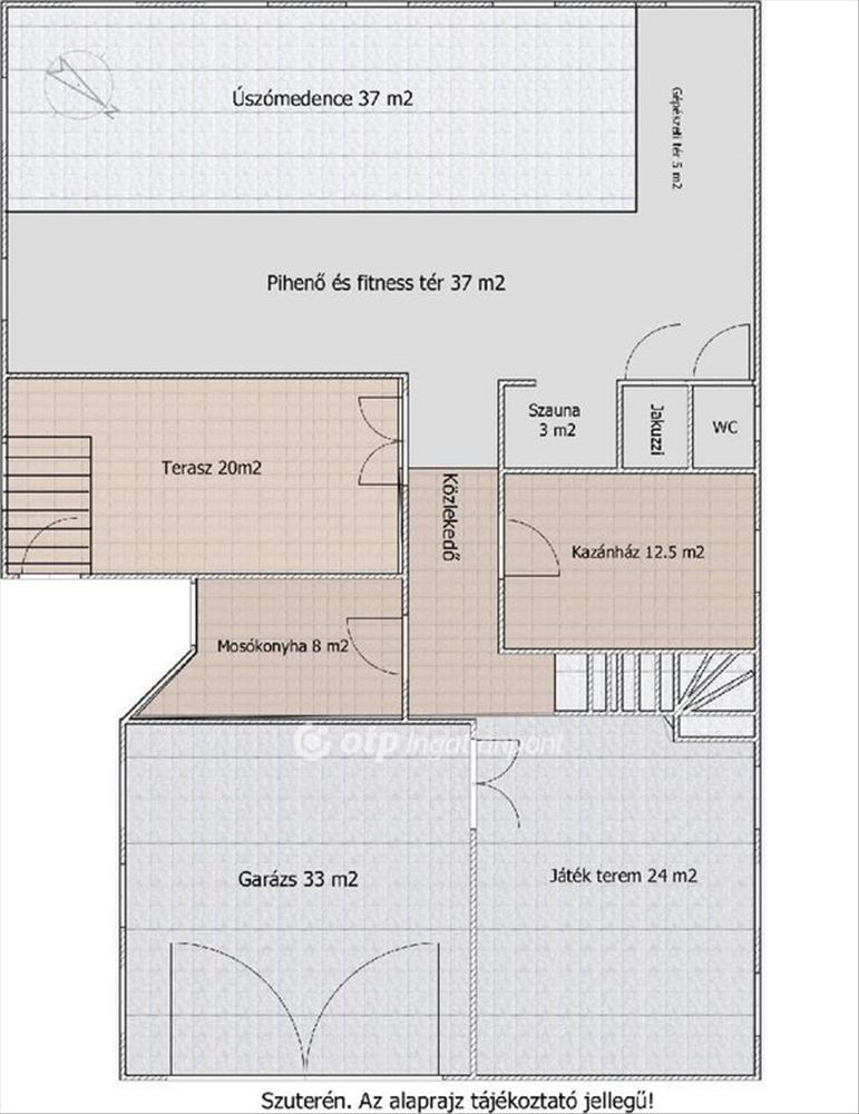 A 140 nm-es szuterén szinten került kialakításra a beltéri uszoda wellness résszel, továbbá dupla állásos, rámpafűtéses garázs, gépészeti helyiség, pingpong szoba és mosókonyha.
