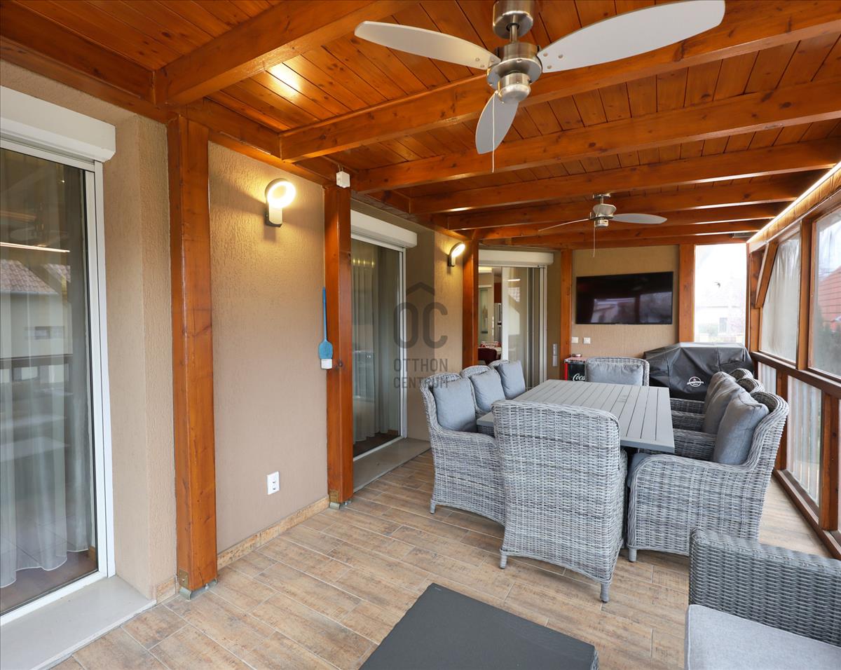 Az ingatlan számtalan, a kényelmet és a komfortot szolgáló felszereltséggel rendelkezik: okos kamera és riasztórendszer, a nyílászárók elektromos redőnnyel és szúnyoghálóval ellátottak, helyiségei klímával felszereltek, kiépített központi porszívó, beépített vízlágyító, elektromos garázs és kertkapu, 20 nm -es fedett és szúnyoghálóval védett terasz, felszerelt moziszoba, wifiről irányítható öntöző rendszer, fúrt kút, merev falú fa berakású medence, fedett grillező.