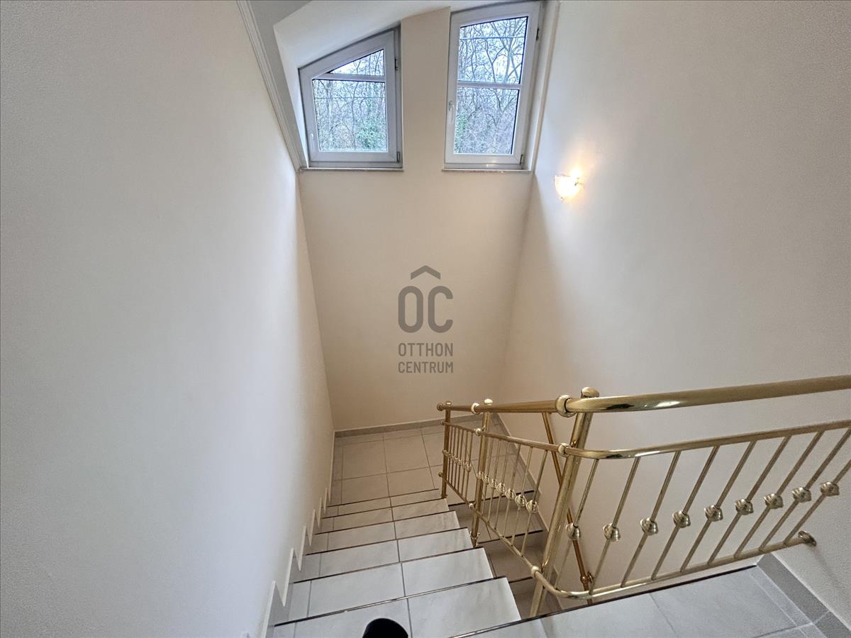 A tágas terek, a több bejárat, a dupla garázs és a jól szeparálható helyiségek miatt az ingatlan céges központnak vagy reprezentatív irodának is kiválóan alkalmas.