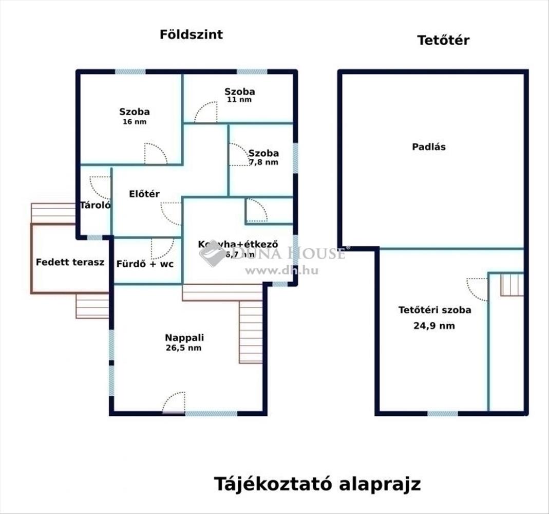 Tetőtér (2000-ben beépítve) – egy 24 nm-es szoba légkondicionálóval + padlástér