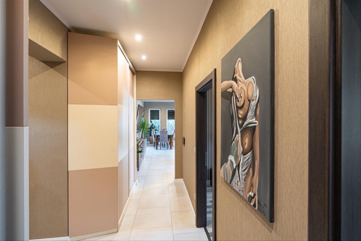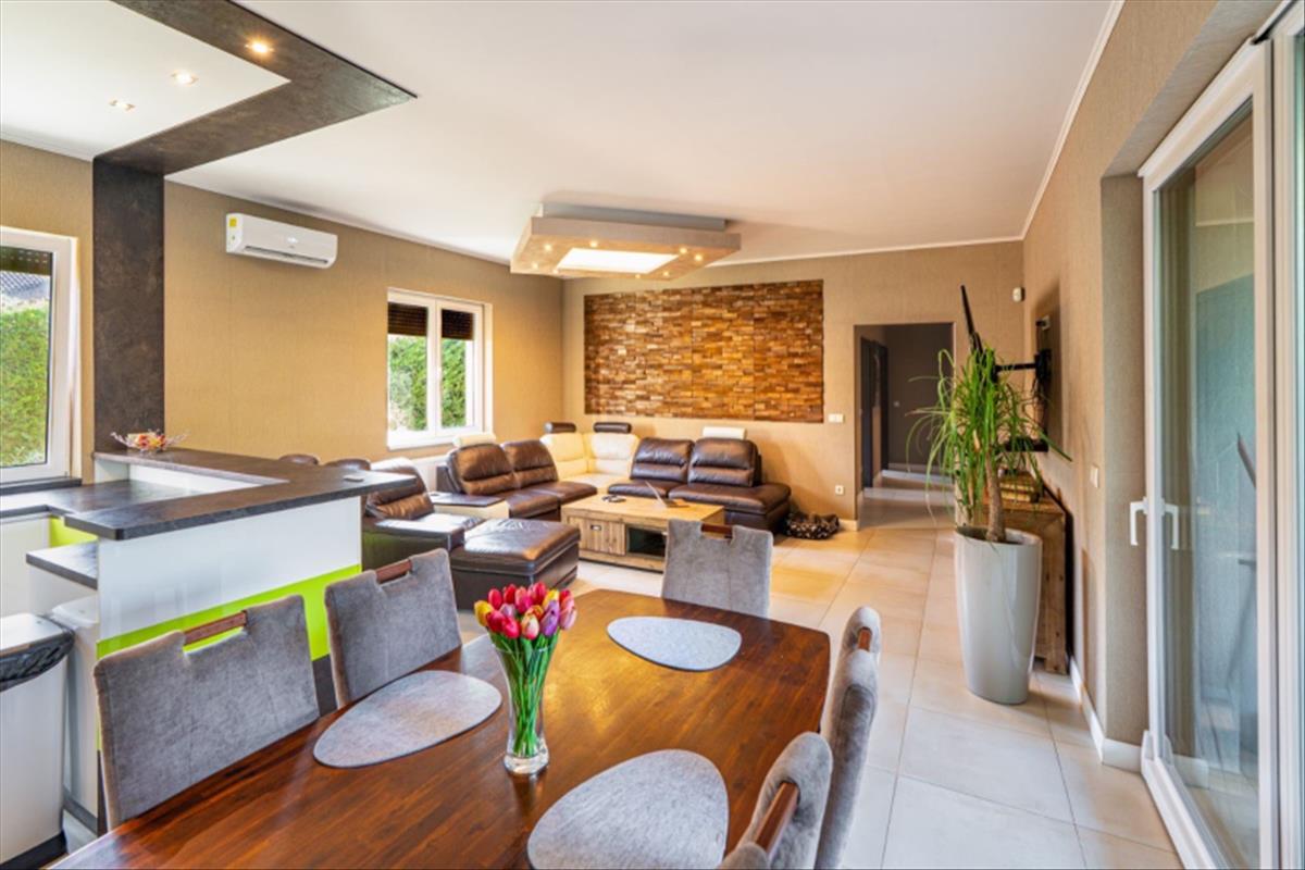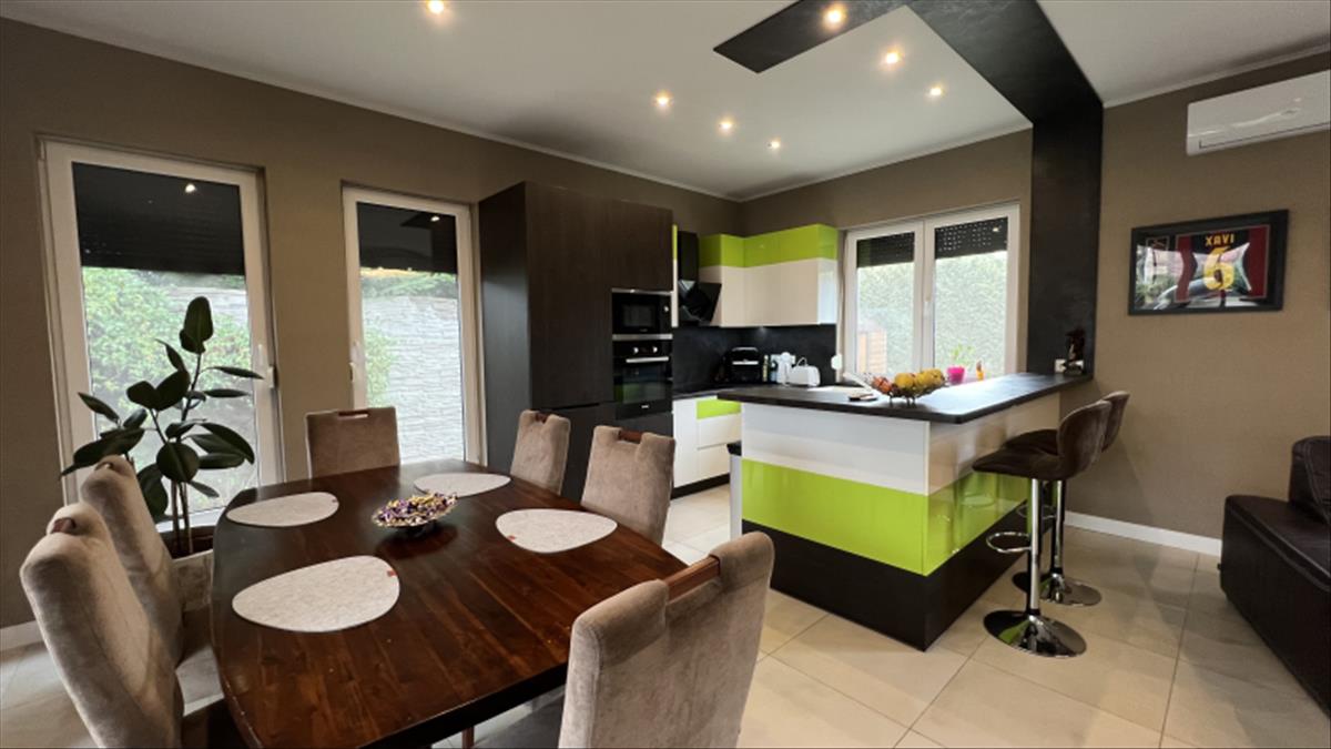Műszaki:Főfalak 30-as porotherm tégla, válaszfalak 25 cm, fűtés kondenzációs cirkó 32 kw, radiátor és padlófűtés, 3 rétegű hőszigetelő üvegezésű kívül színes bukó-nyíló nyílászárók, 10 cm-es dryvit szigetelés, riasztó, alumínium redőny, szúnyogháló beépítés, hűtő-fűtő klímák több helyiségben, padlófűtés, elektromos kapu és garázskapu, cserépfedés, térkövezés, kerti faház (9 m2), öntöző rendszer, hőszivattyúról fűthető medence( 6 x 3méteres), fénytechnika, kerti világítások, fedett terasz, kerti bútorok, sütögető, 9 db tv a házban (47colos-75colos), wellness részleg 6 fős finn szauna zuhanyzóval.