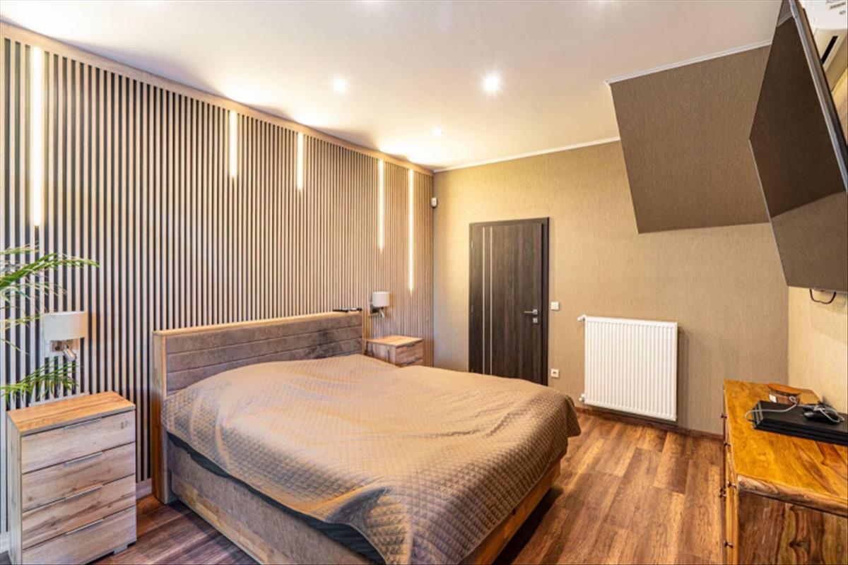 Az ingatlan teljes berendezéssel eladó, mindkét szinten beépített konyhabútor, beépített gépekkel, 3 darab beépített gardrób szekrény, fürdőszoba szekrények, álmennyezet, spot világításokkal, fényterápiás fürdőkád, étkező asztal, ágyak, nappali bőrgarnitúra stb. .