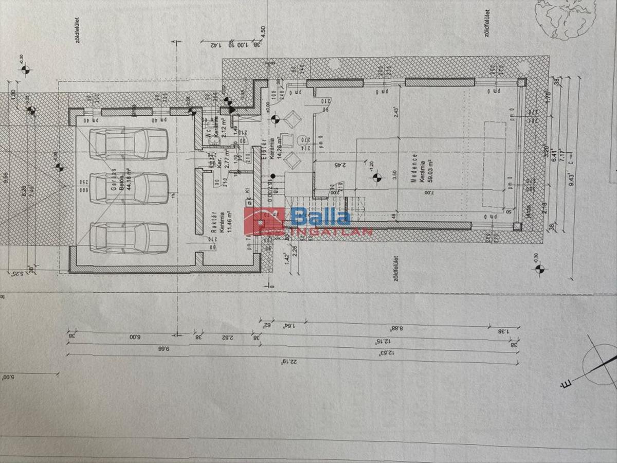 Földszint: előtér+lépcső/medence/raktár/Wc/közlekedő/garázs,
