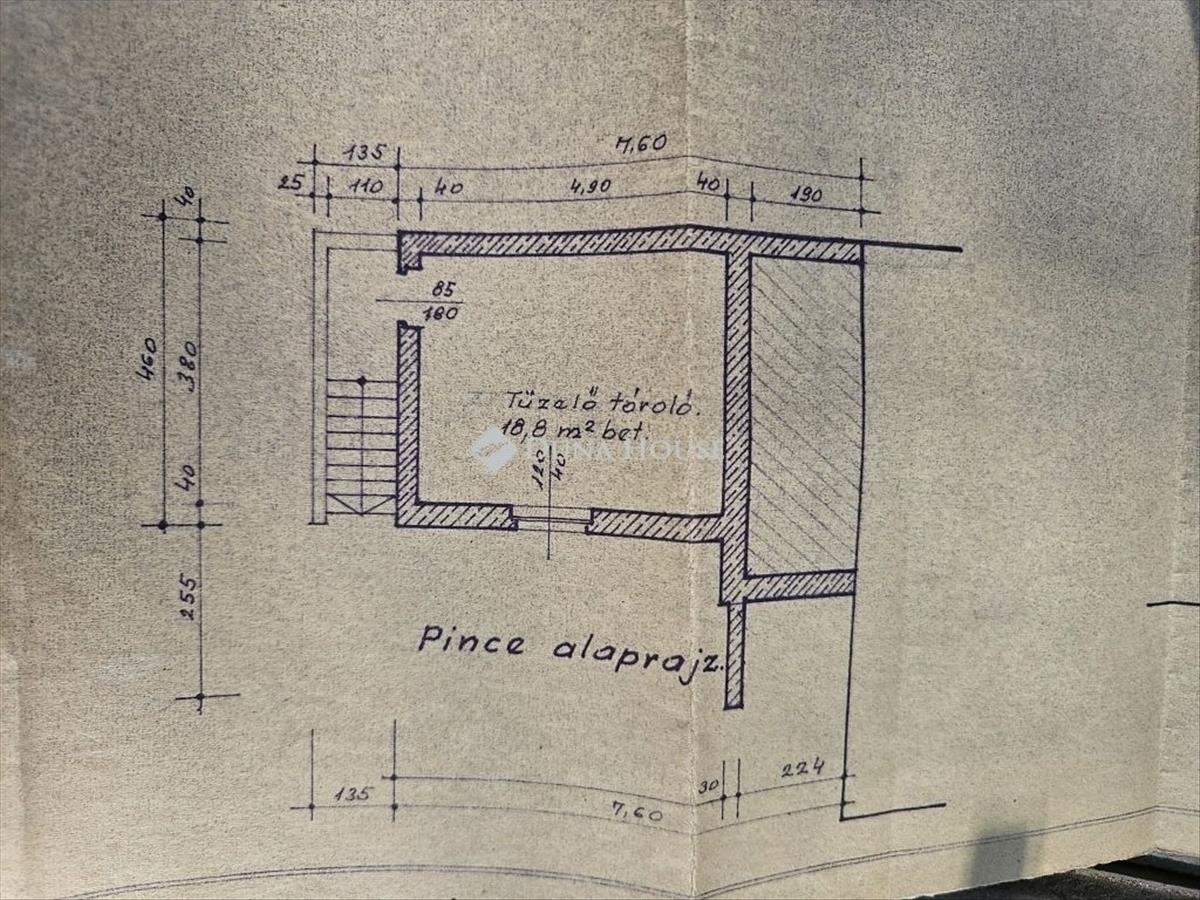 A főépület 100 % osan felújítandó állapotú és fafödémes, a ház alatt 18, 8 nm - es pince húzódik.