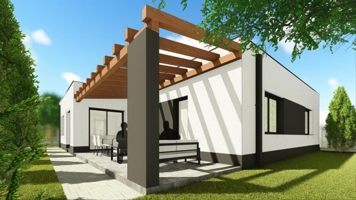 Kossuth-telep csendes utcájában egyszintes, minimál stílusú, 135 m2-es, nappali + 3 szobás, nagy teraszos, dél-nyugati tájolású, új építésű családi ház garázzsal, 428 m2-es telekrésszel 2026 tavaszi átadással kulcsrakészen eladó. Részletes műszaki leírás kérhető.