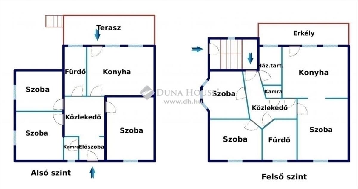 Az alsó szint, szinte teljes mértékben azonos a felső szint elrendezésével, valamint ez a szint is teljesen külön bejáratú.