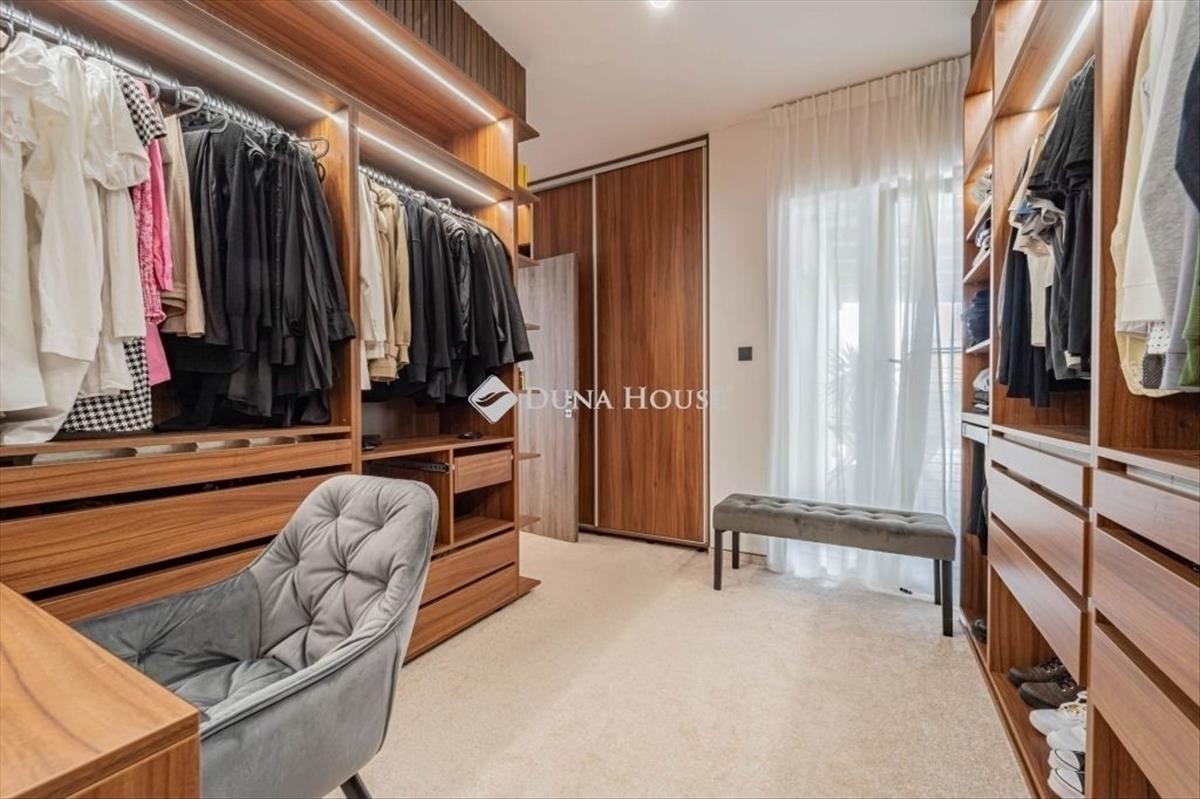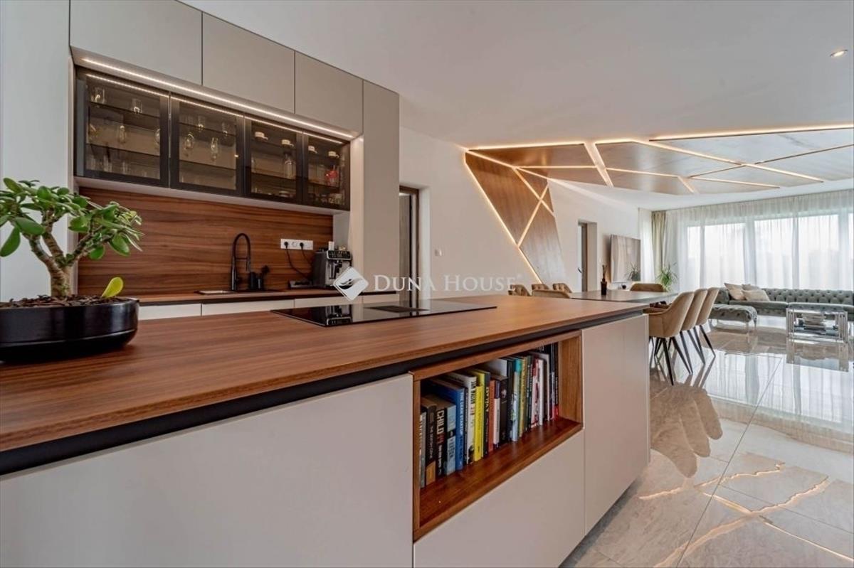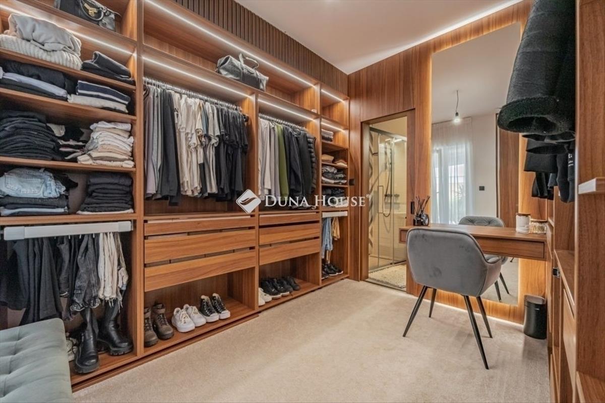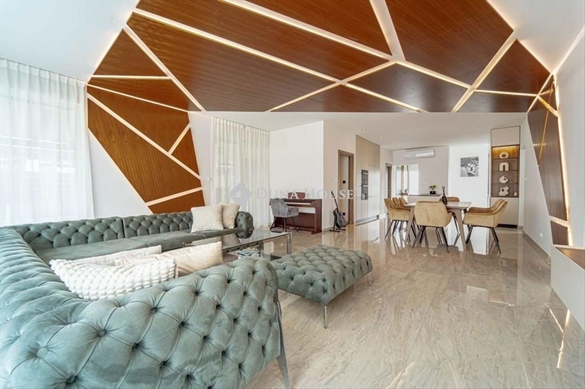 Nappali +3 hálószoba található a házban, két fürdőszobával és külön illemhelyiséggel. Az otthon minden szegletét belsőépítész által terveztette a tulajdonos. Az összes tér és bútor összhangban van kialakítva egymással, a ház bármely területén járunk, mindenhol visszaköszön valami, ami az alapos tervezés eredménye. Minden helyiségben egyedileg ide gyártott beépített bútorokat találunk melyek az egész ház stílusával harmonizálnak. a gondos tervezés eredményeképp itt nem lesz olyan tárgy aminek nem lehet megtalálni a maga helyét.