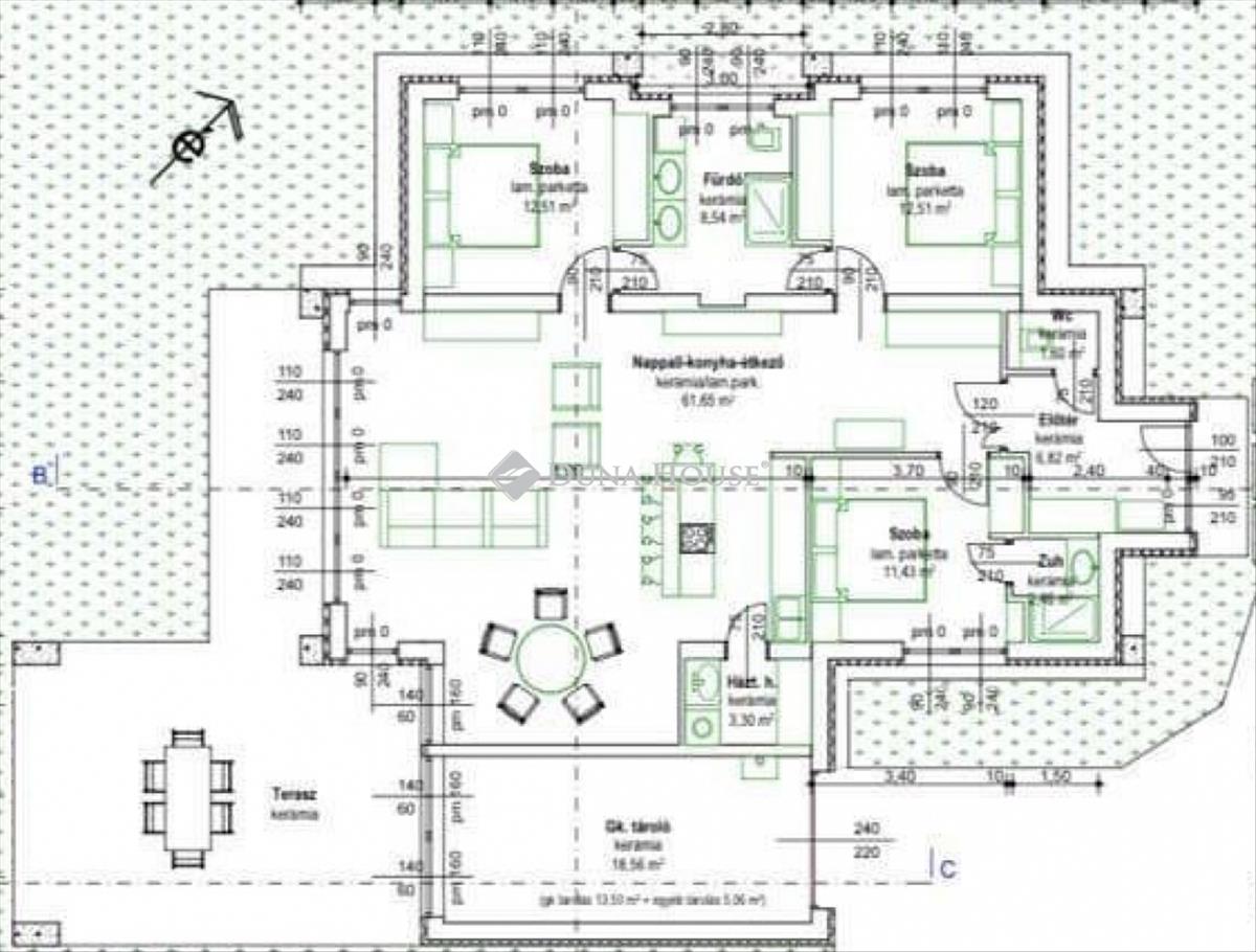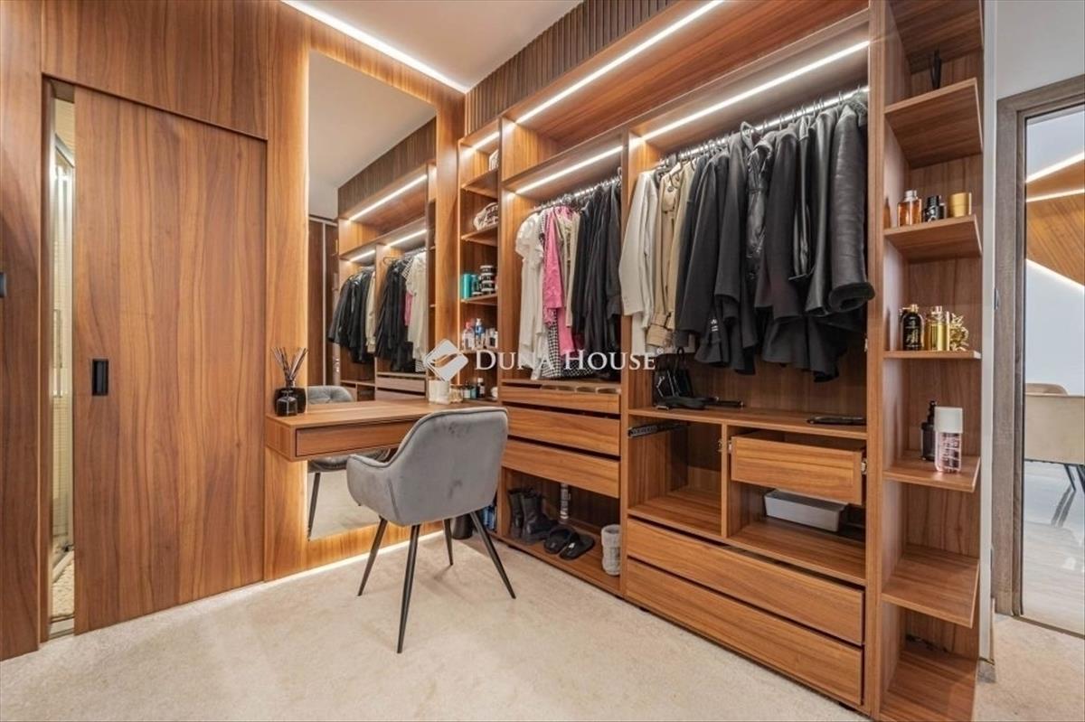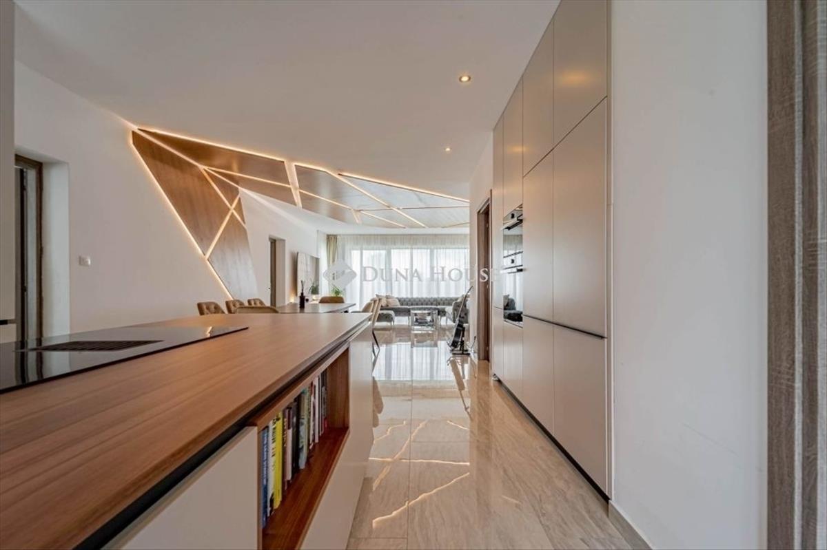 Nappali +3 hálószoba található a házban, két fürdőszobával és külön illemhelyiséggel. Az otthon minden szegletét belsőépítész által terveztette a tulajdonos. Az összes tér és bútor összhangban van kialakítva egymással, a ház bármely területén járunk, mindenhol visszaköszön valami, ami az alapos tervezés eredménye. Minden helyiségben egyedileg ide gyártott beépített bútorokat találunk melyek az egész ház stílusával harmonizálnak. a gondos tervezés eredményeképp itt nem lesz olyan tárgy aminek nem lehet megtalálni a maga helyét.