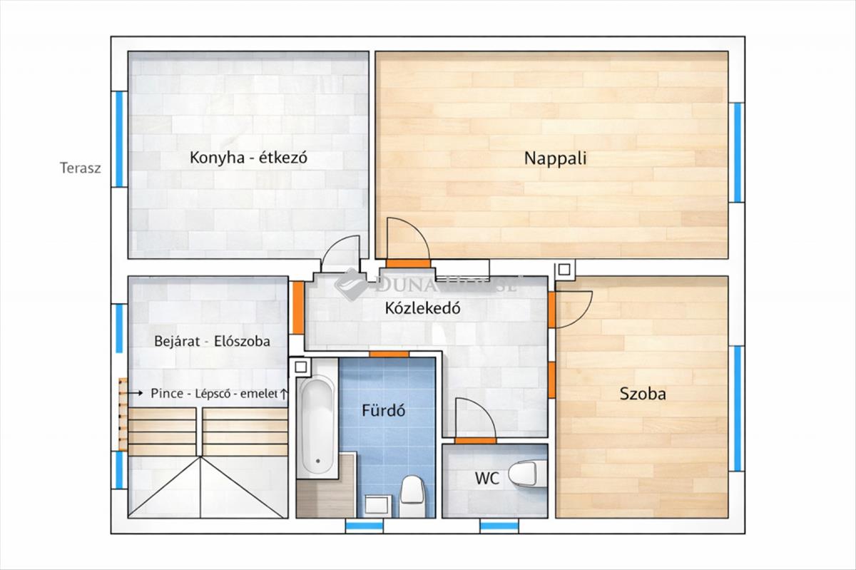 - 2 fürdőszoba + külön WC-k
