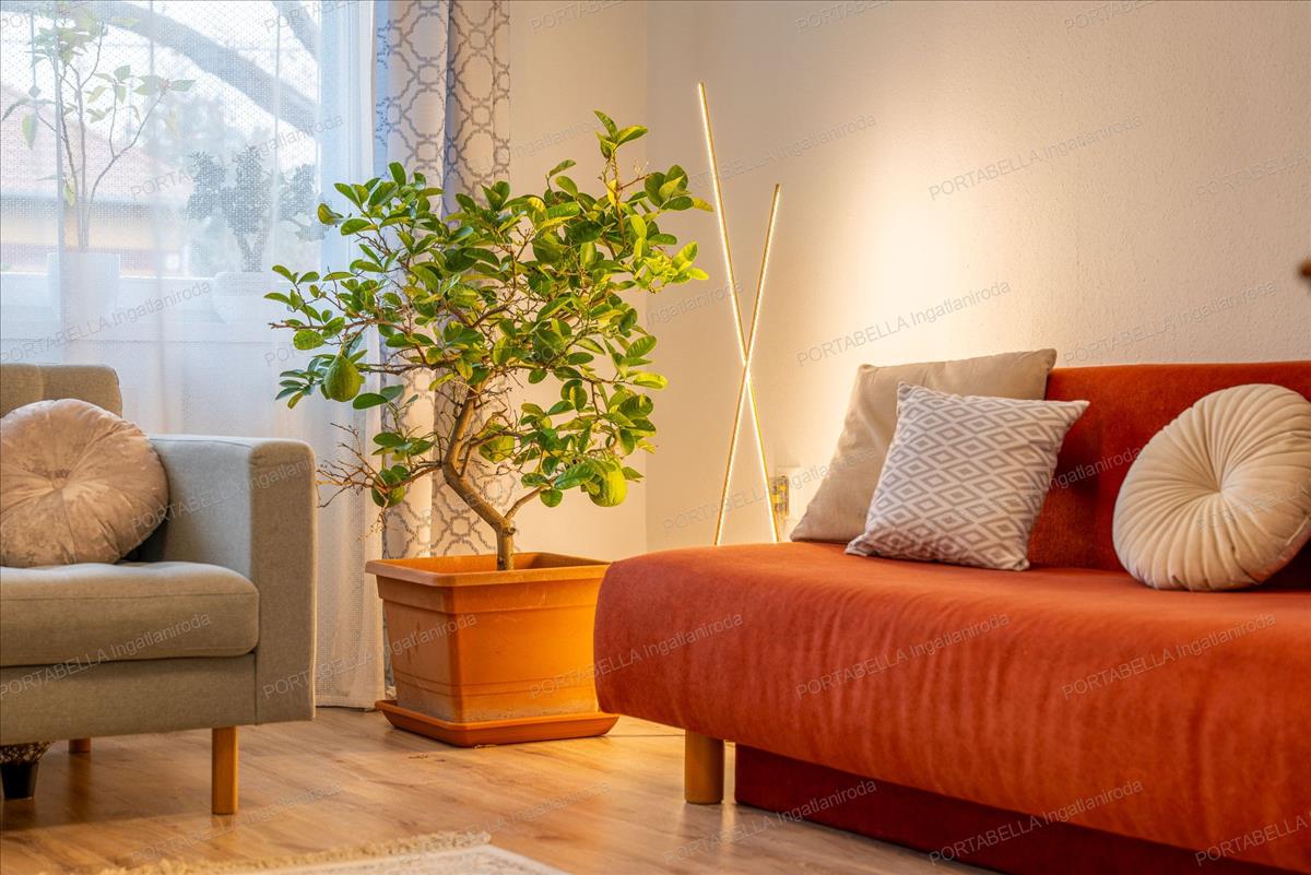 A nyugati tájolásnak köszönhetően az otthon egész nap fényárban úszik, különösen a nappali és a terasz kapcsolata teszi igazán élhetővé az ingatlant.