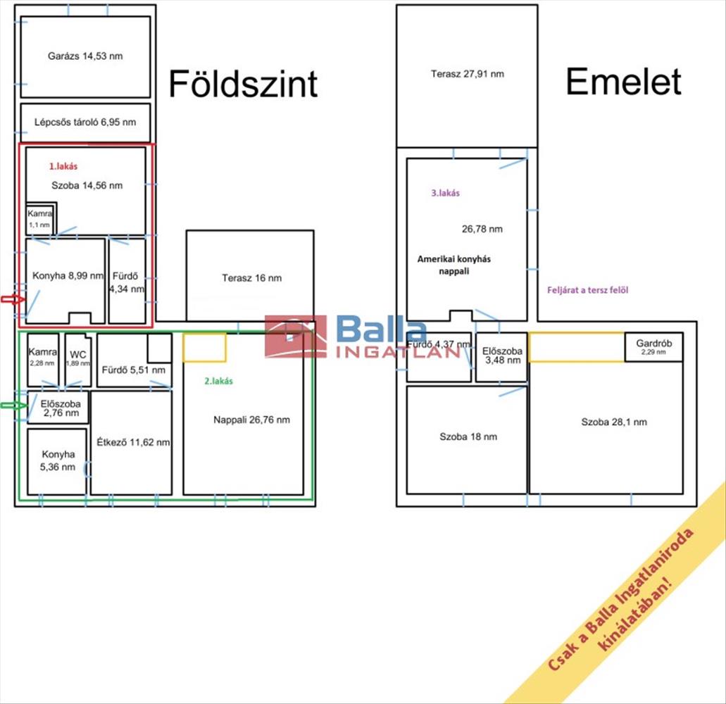 nappali, konyha, étkező, kamra, fürdőszoba, külön wc és 16nm-s kertkapcsolatos terasz.