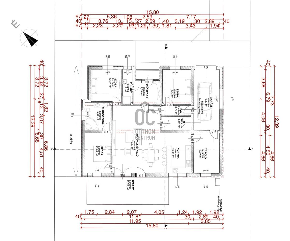 164 Nm hasznos alapterületű földszíntes, amerikai konyhás nappali, 4 hálós, 2 fürdőszoba-wc, háztartási helyiség, terasz és saját 660m2 kert!