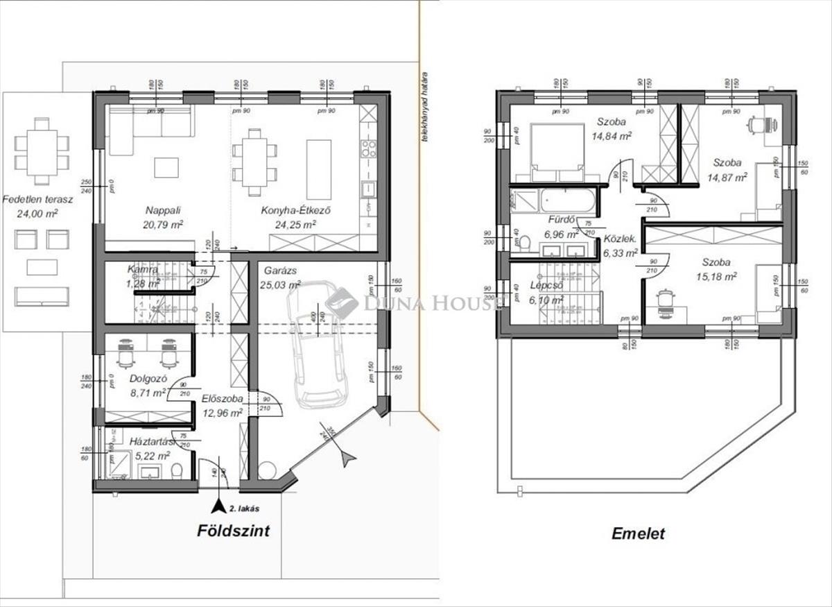 A földszinti szint 96 nm az emelti szint 64 nm-es.