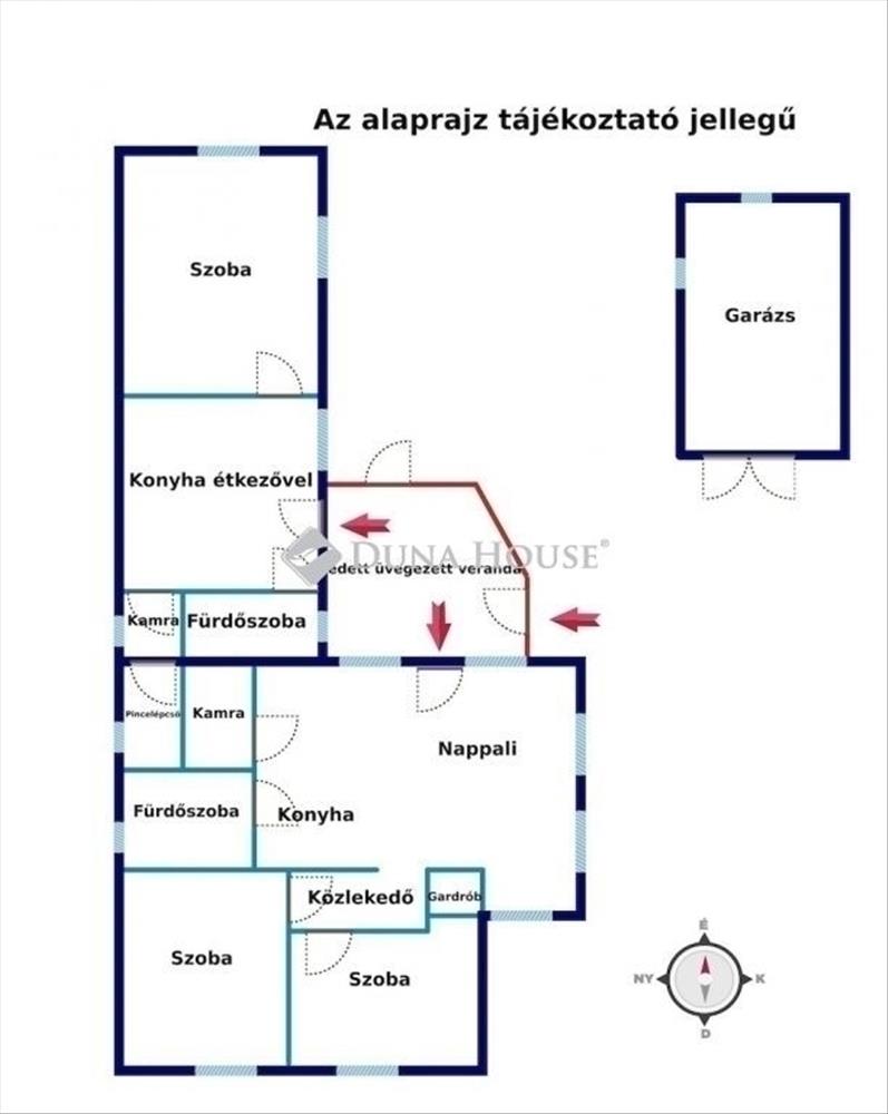 A hátsó, kisebbik lakrészben (36, 4 nm ) az étkezős konyhába érkezünk belépéskor, ahonnan a fürdőszobát, a kamrát (innen nyílik a pincelejáró) és egy nagyobb méretű szobát érünk el. a két lakrészt egy fedett, üvegezett verandán (18, 5 nm ) keresztül érjük el. Biztonságunkról riasztó gondoskodik. a kertgyönyörűen karbantartott, minden igényt kielégítő. Fúrt kút található benne, mely megoldja az öntözés problémáját.