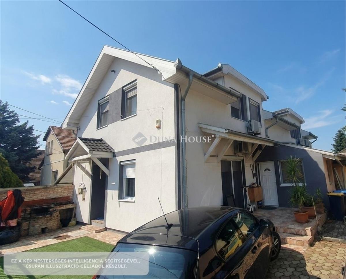 Kétszintes 2 lakásos családi ház egyik fele eladó a XVIII. kerületben, csendes utcábanEladásra kínálunk Budapest XVIII. kerületében, egy nyugodt, csendes utcában, mégis kiváló közlekedés mellett elhelyezkedő, két szintes 2 lakásos családi ház egyik felét, az Üllői út közelében. Az ingatlan elrendezése:Földszint: tágas, világos nappali kényelmes, jól használható konyha zuhanyzós fürdőszoba külön mellékhelyiség lépcső alatti praktikus tárolóEmelet: 3 különnyíló szoba kádas fürdőszoba külön mellékhelyiségA ház 2003-ban épült, műanyag nyílászárókkal, jól átgondolt, családbarát elrendezéssel. a homlokzaton 10 cm Dryvit szigetelés. a házon kamera rendszer működik. a hűtésről 3 db klíma gondoskodik. a fűtést és a melegvizet kombinált gázcirkó biztosítja. Napelem rendszerhez és elektromos autó töltőhöz a kiállások előkészítve. a kert esztétikus, karbantartásmentes műfűvel kialakított. Környék és közlekedés: Az Üllői út néhány perc sétával elérhető Busz- és villamosmegálló a közelben Spar, gyógyszertár, pékség óvoda, iskola, játszótér a közelbenEz az ingatlan ideális választás családoknak, akik csendes környezetben szeretnének élni, ugyanakkor fontos számukra a gyors városi közlekedés és a teljes infrastruktúra közelsége. FIX 3% lakáshitelre megvehető
