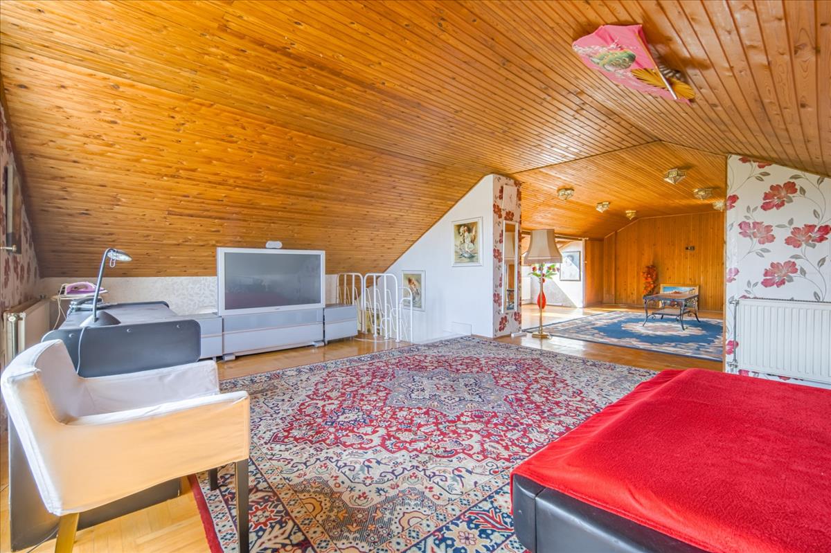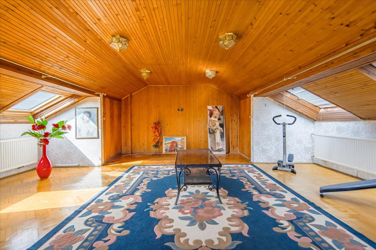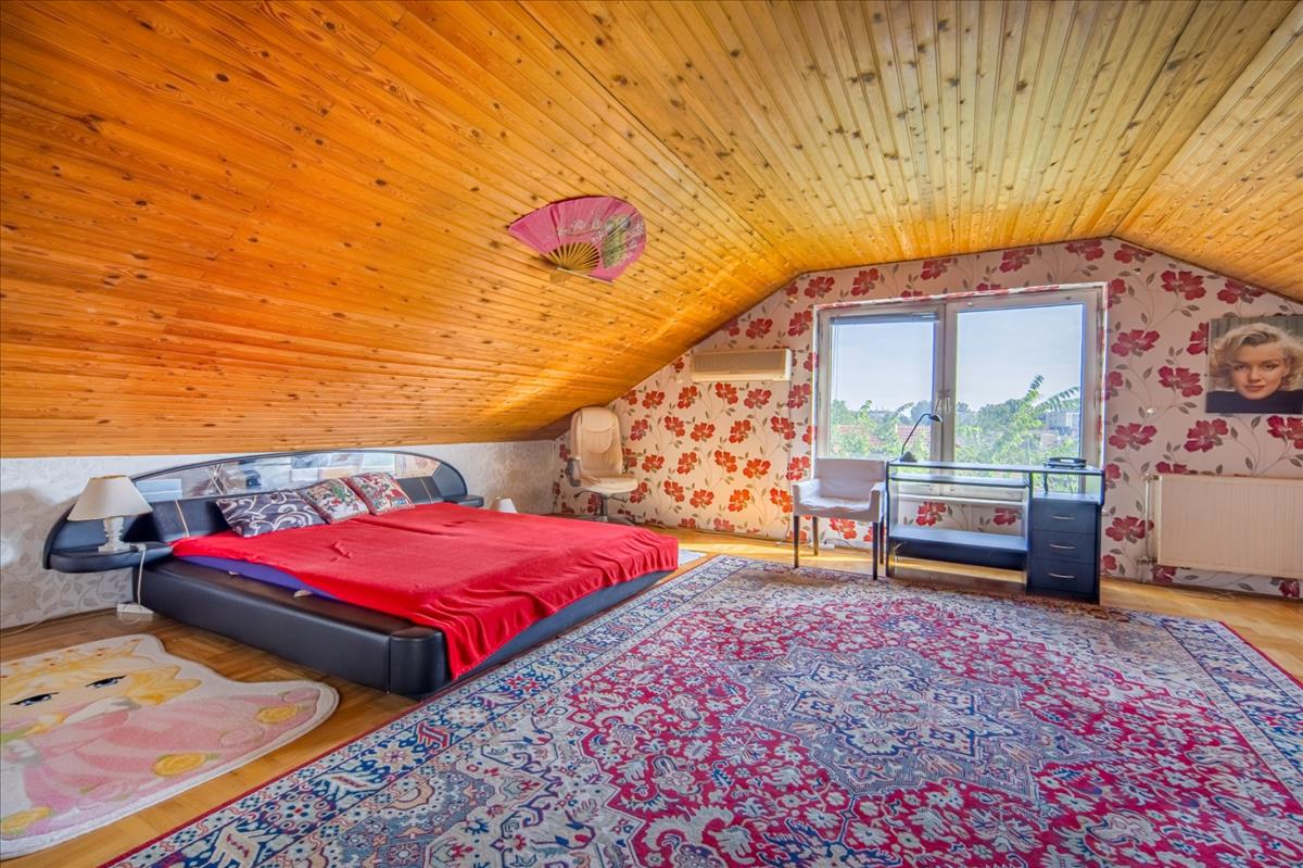 Az emeleten található, jelenleg egymásból nyíló (de ajtó nyitásával különválasztható) két nagy hálószoba 24-26 m2-es, a tetőtérben pedig egy szétválasztható, jelenleg egybenyitott, 40 m2-es szoba található.