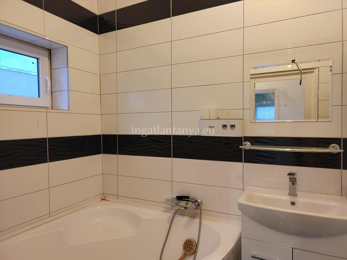 Az első ingatlanba lépve jobbra a hálószobát (11, 00 nm), balra a kádas fürdőszobát, szemben az étkezős konyhát találjuk, ahonnan nyílik a nagyszoba (25, 00 nm).