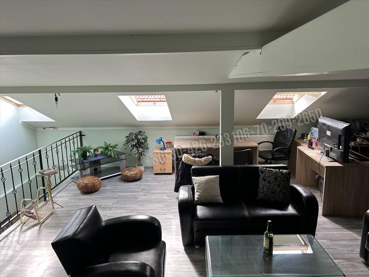 A második ház ( mely közel 170 nm ) szintén 4 helyiségből áll, melyek jelenleg irodaként működnek. Az alsó részen található 3 szoba ( 20 - 20- 21 nm ) a felső szinten pedig egy 63 nm-es helyiség, mely úgy lett kialakítva, hogy akár két szobának is megosztható. Ebben az épületben is található egy kis konyha és egy mosdó.