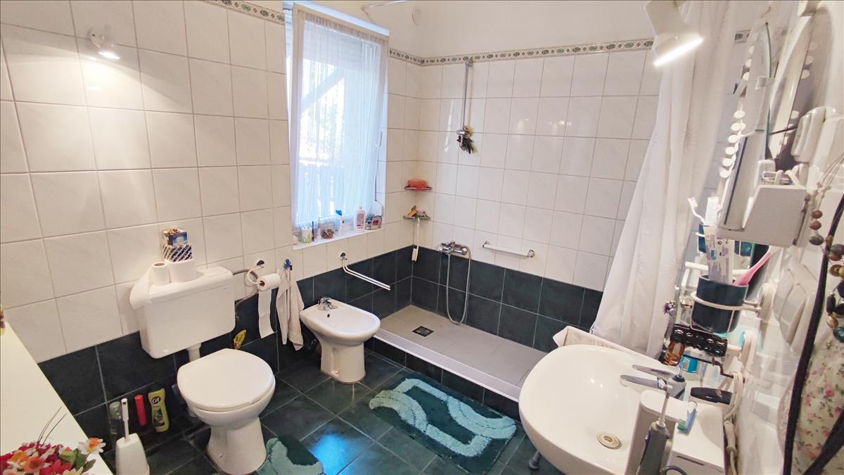 A pinceszintent akár szauna, edzőterem is kialakítható, jelenleg mosókonyha, zuhanyzó, több tároló helyiség is található. a füldszinten található a tágas nappali konyha étkezővel, három hálószoba, melyekből az egyik fél szobának számít, egy fürdőszoba és egy wc, illetve egy tároló helyiség, valamint több beépített szekrény.