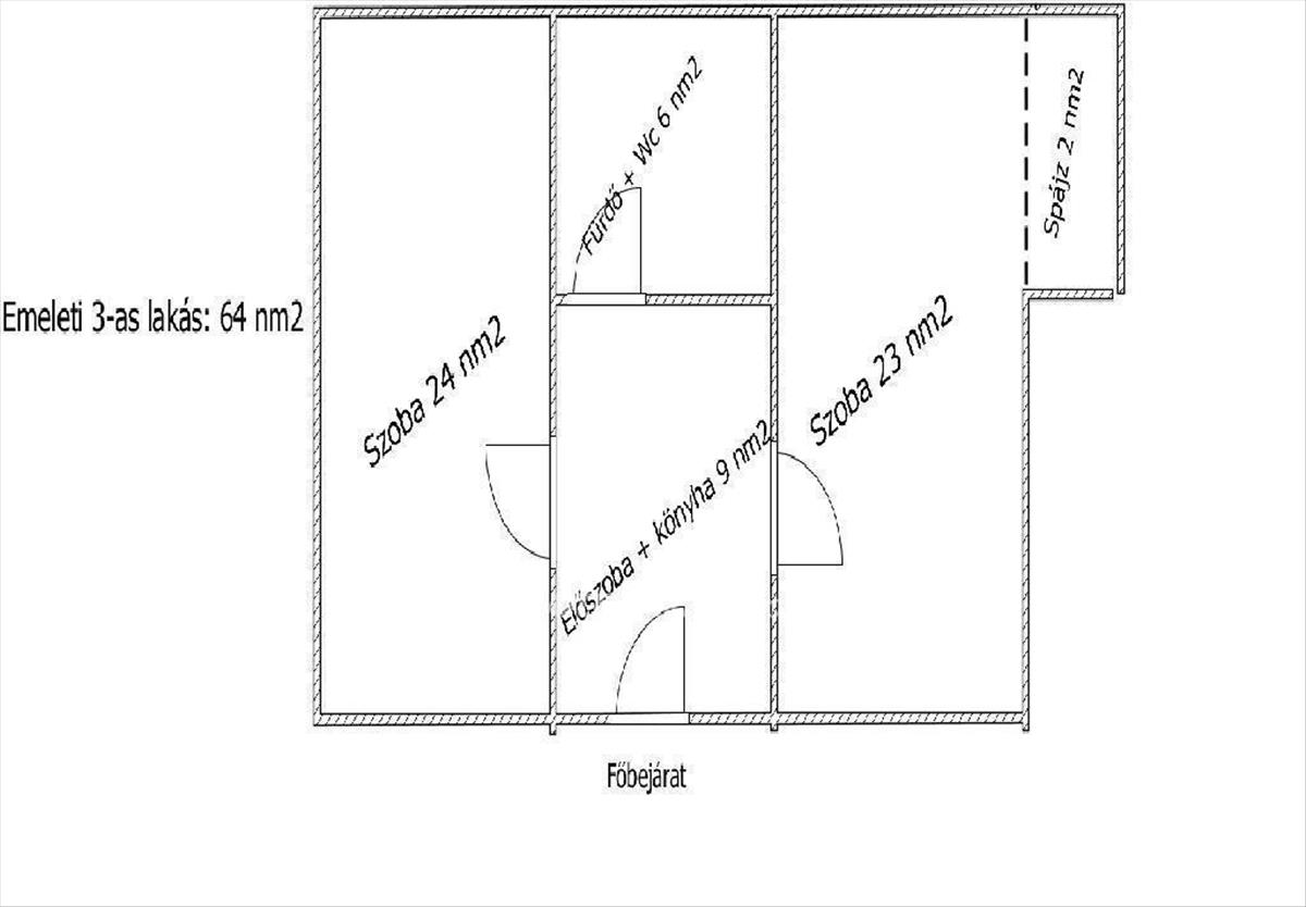 - Emeleti lakások: 64 nm-es két szoba + konyha, fürdőszoba,