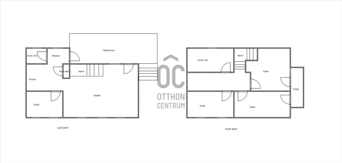 Felső szinten: 3 külön nyíló szoba -fürdőszoba/wc
