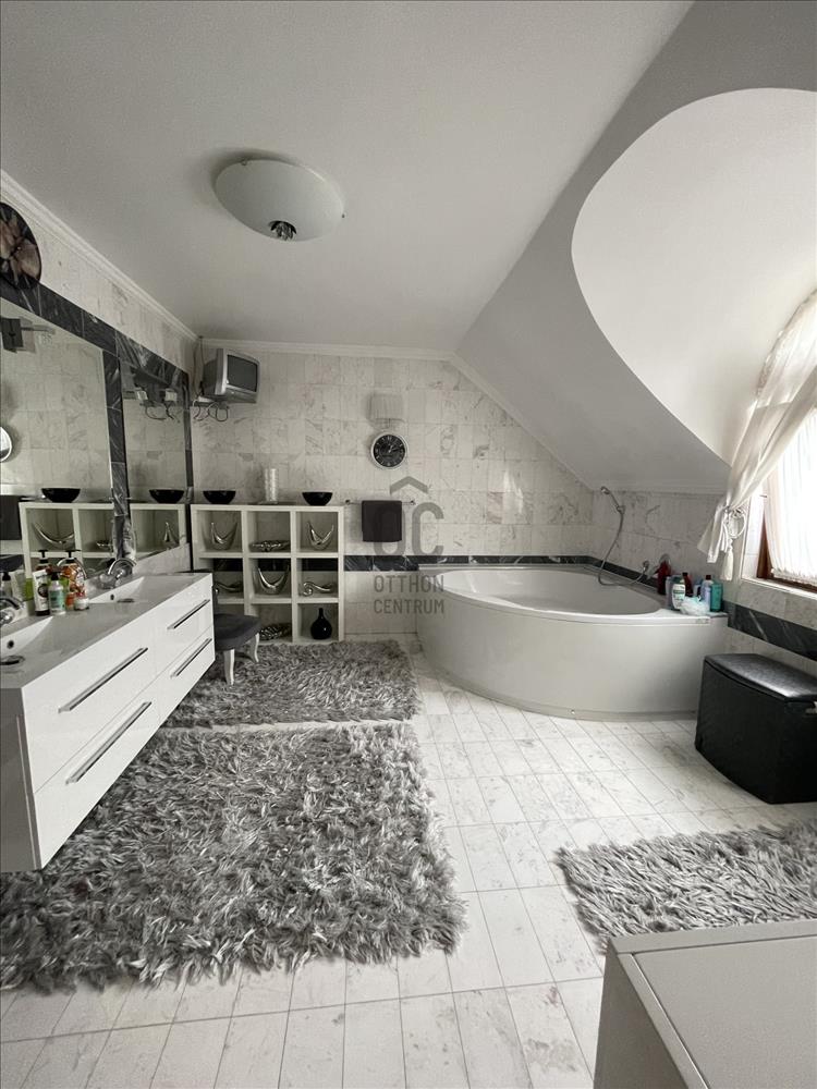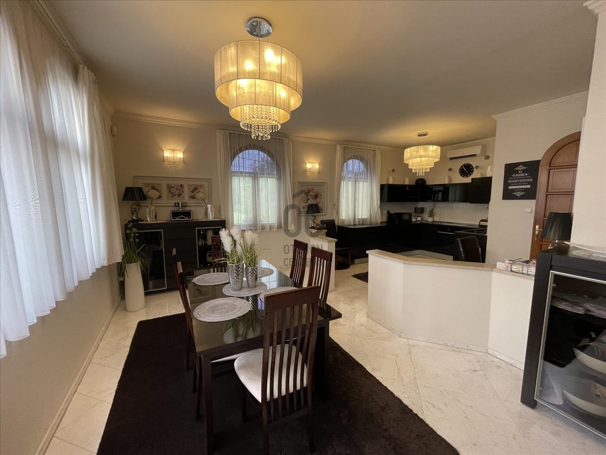 XX. kerület csendes kertvárosi övezetében eladó egy 612nm- es telken 390nm-es, két szintes 4 szobás családi ház. Pilisi természetvédelmi, panorámás területtel szemben, ami sosem kerül beépítésre. Az ingatlan 1998-ban épült, mélygarázzsal(3 kocsibeállással). Letisztult terekkel nappalival 56 mn, nagy étkezővelés konyhával52 mn, minden szinten fürdőszobával. Földszinten mindenhol carrarai márvány padló borítás van. Az egész házban minden szinten külön termosztáttal szabályozható a fütés. Gazdaságos kis fogyasztású Termomax. a földszinten padlófütés az emeleten termofejes radiátorok minden helyiségben. Riasztórendszer, kamerákkal távfelüszelethez bekötve. Mediterrán kert programozott öntözőrendszerrel és furt kúttal. a ház északi részén a nappaliból kilépve egy 50 nm-es teraszra nézhetünk, ami körbefogja a házat. Az ingatlan teljes berendezése az árban benne van!