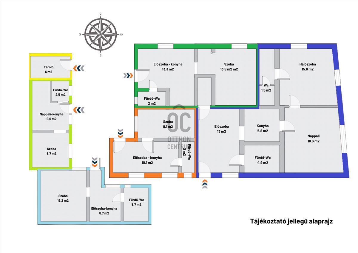 ✅ Az épület kiadásra optimalizált elrendezésű, több, egymástól független lakrész került kialakításra.