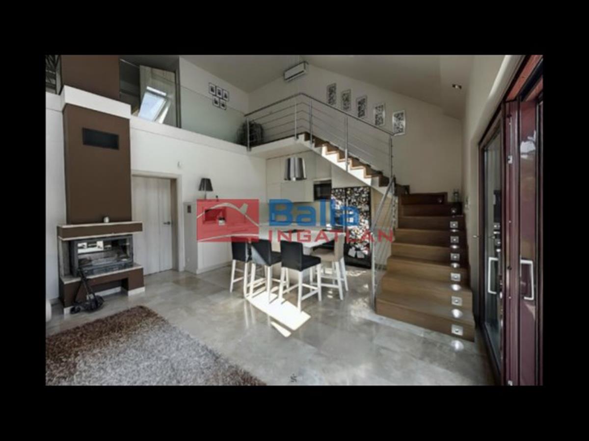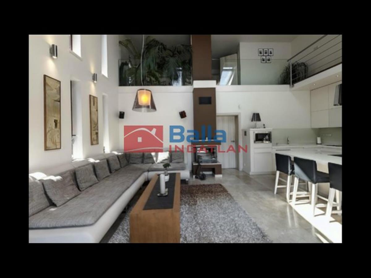 A földszint központi egysége a közel 70 nm -es amerikai konyhás nappali-étkező. a lakás minden funkciója, mint főzés, étkezés, Tv nézés minden pontból összekapcsolható, látható. a hatalmas belmagasságot (5, 5 m) elegáns katedrális mennyezet képviseli. a körbefutó üveg korlátos galéria még emeli a színvonalat.