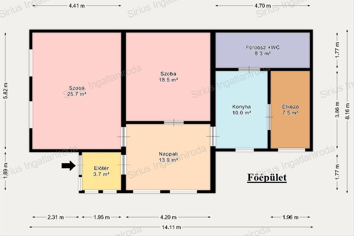 A 90 nm -es főépület jelenlegi elrendezése nappali + 2 szoba, étkező, konyha és fürdőszoba, azonban adottságainak köszönhetően könnyedén átalakítható amerikai konyhás nappali + 3 szobás kialakításúvá, így ideális választás lehet nagyobb családok számára is. a különálló, 30 nm -es melléképület egy teljes értékű kis lakásként funkcionál, amelyben szoba, konyha-étkező és fürdőszoba található – tökéletes lehet többgenerációs együttéléshez, vendégháznak vagy akár kiadásra is.