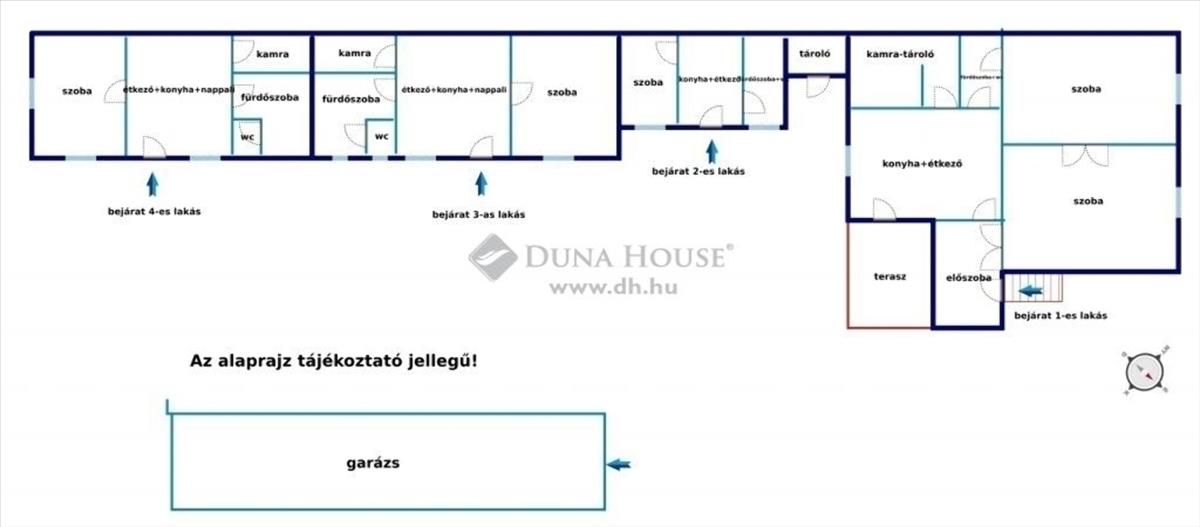 A négy önálló lakás egy telken található, mindegyik önálló bejárattal rendelkezik, biztosítva ezzel az intimitást és kényelmet minden lakó számára.
