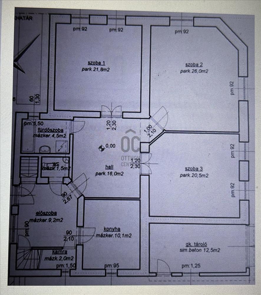 Az elosztás kifejezetten előnyös: a házban négy tágas szoba található. a központi szobából nyílik a további három, nagy méretű, világos helyiség, biztosítva az elszeparált élettereket. a házhoz kapcsolódik egy 12 m²-es terasz, amely közvetlen kapcsolatot teremt az udvarral. a 25 m²-es pincehelyiség nemcsak tárolásra alkalmas, hanem akár hobbiszobának vagy műhelynek is kialakítható.