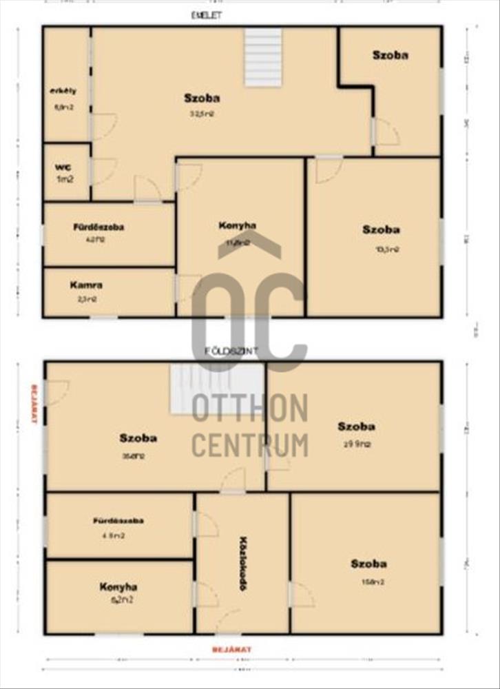 Az ingatlan 2 bejárattal rendelkezik, az emeleten is konyha, fürdőszoba, wc, 3 szoba található.