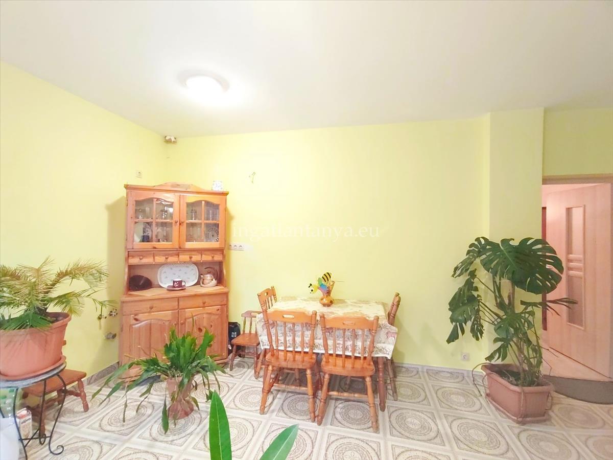 A teraszról nyílik a másik lakás bejárata, belépve a konyha + étkezőbe érünk, majd a zuhanyzós fürdőszoba és vele szemben a szoba nyílik. Ez a rész 42 nm .