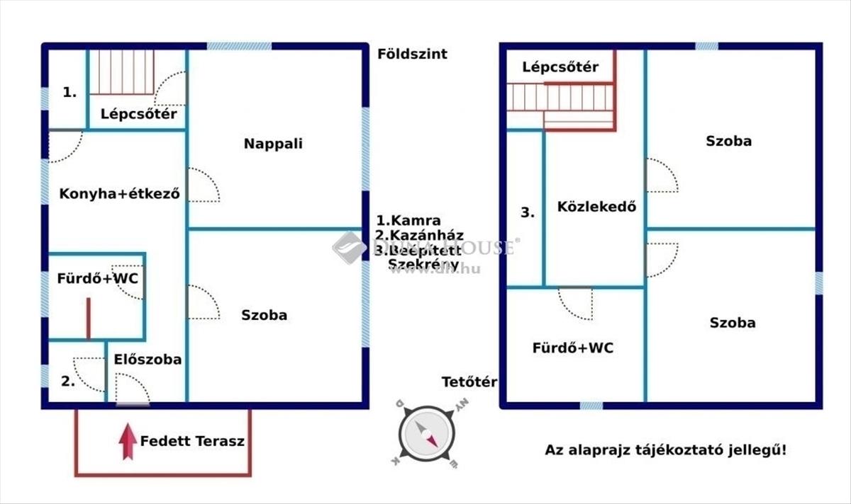 - Tájolás:ÉNY