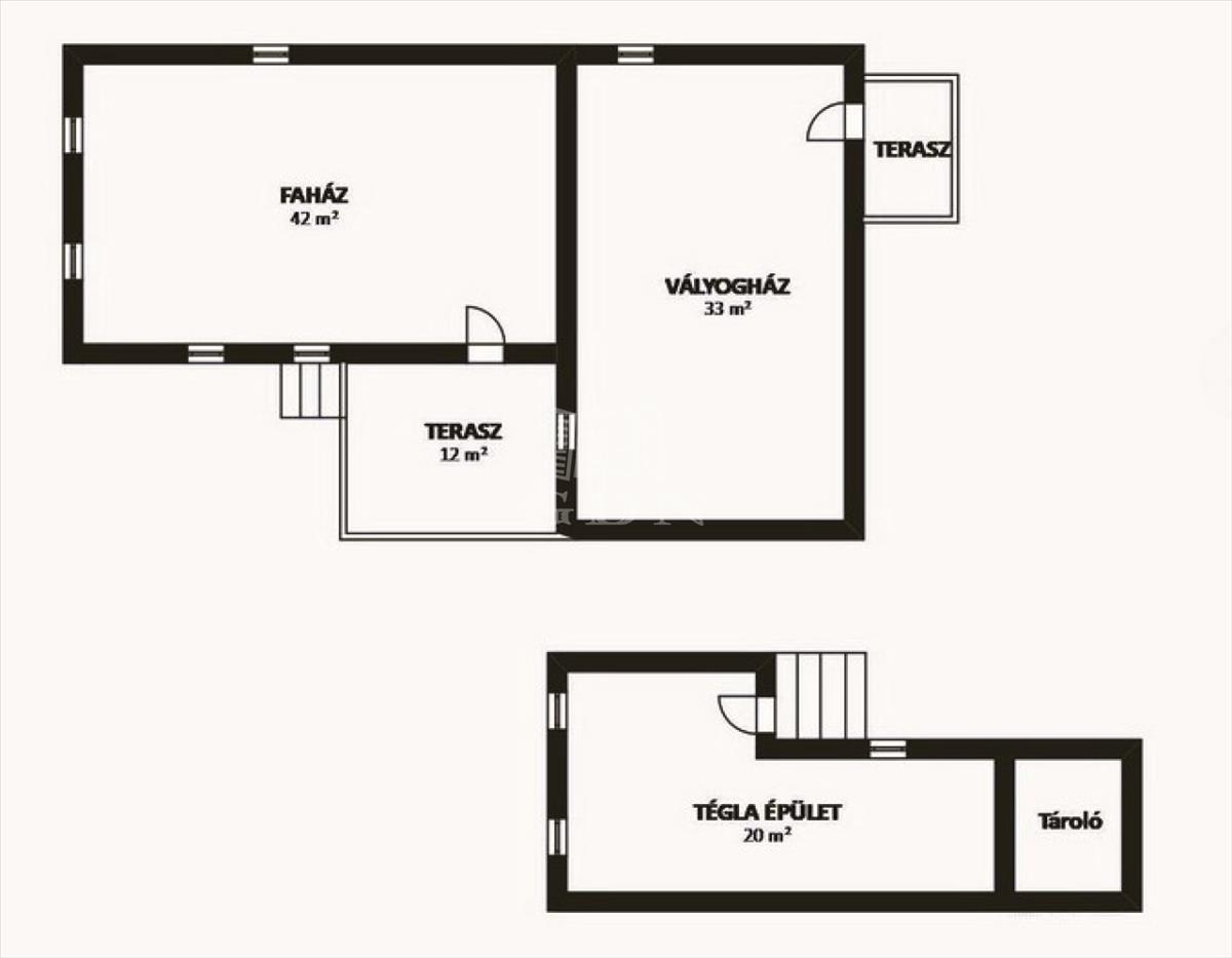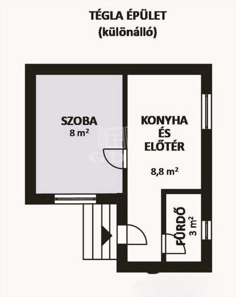A főépület mellett található, egy teljesen különálló, közepes állapotú 20 nm -es tégla építésű ház. Helyiségei: Előszoba, 1 szoba, fürdőszoba WC-vel és konyha. a szobában hatalmas 60 cm mélységű gardróbszekrény található. a konyhabútor méretre csináltatott.