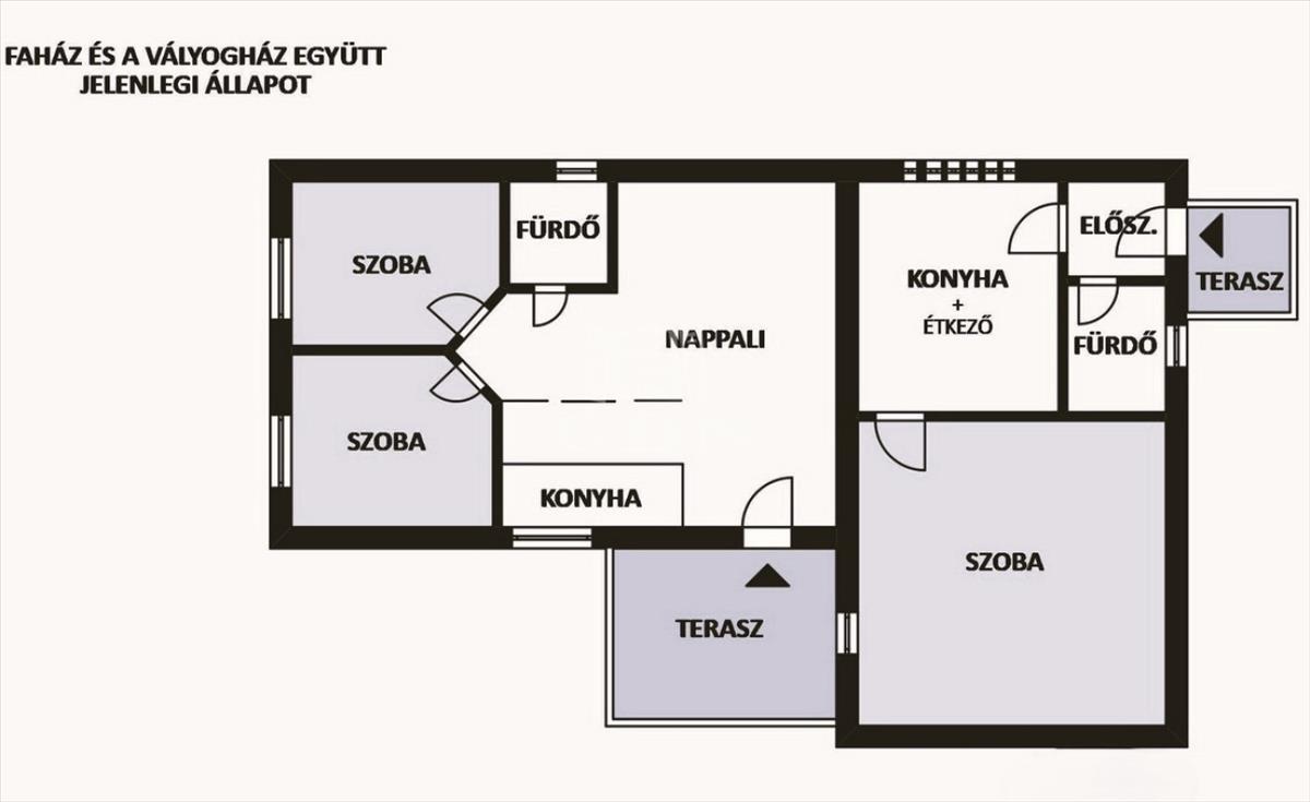 Vályogház teljes mérete: 33 nm + a terasz 2 nm