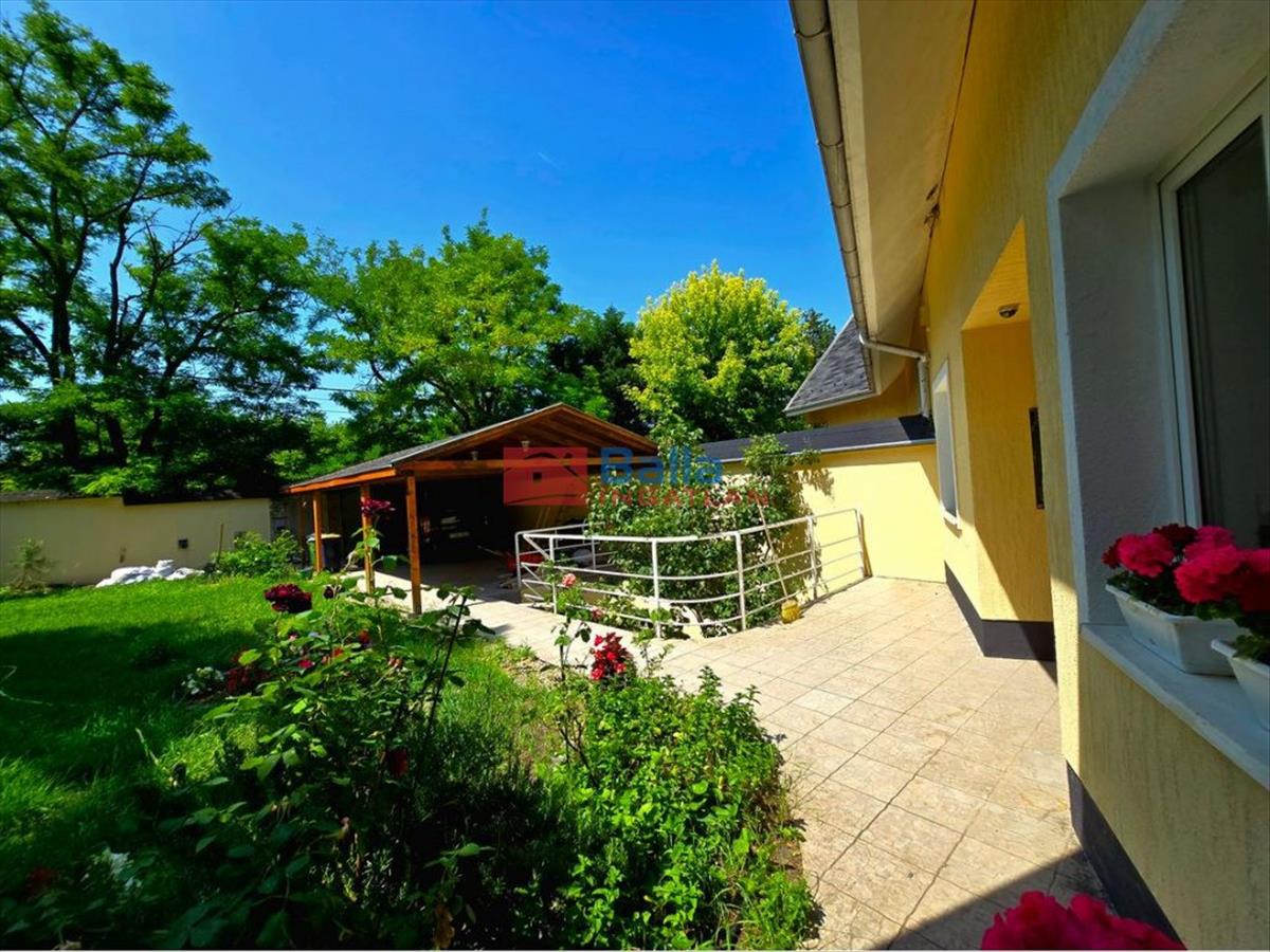 Az igényesen kialakított kertben, 10nm-es fedett tároló, medence, kerti sütögető, szaletli, esővízgyűjtő a locsoláshoz található.