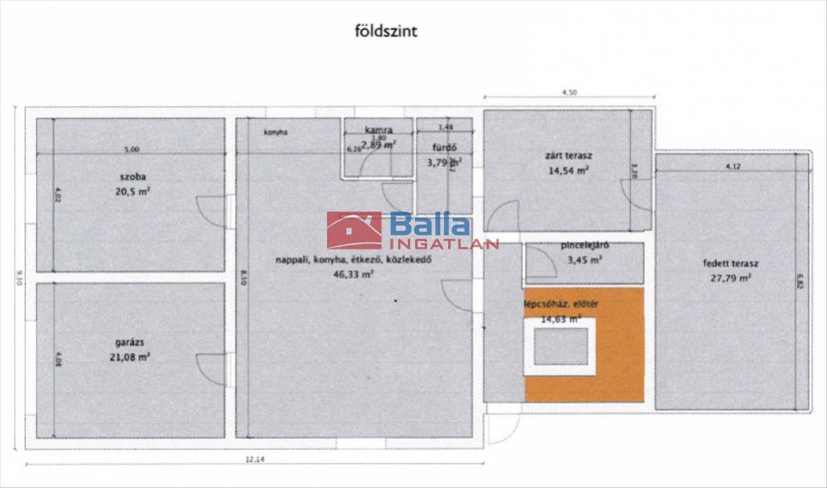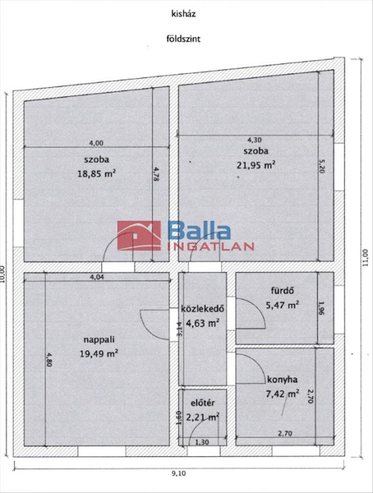 Földszint: 3 szoba, konyha, étkező, fürdőszoba, közlekedő