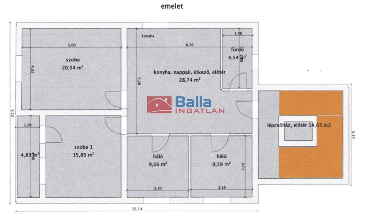 Emelet: amerikai konyhás nappali, 4 hálószoba, fürdőszoba