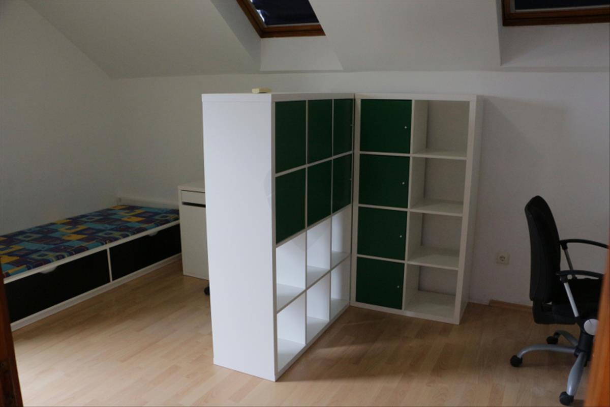 Felső szint: 100 m2 – 2 szoba, 2 félszoba, nagy fürdő (2 mosdó, sarokkád), külön wc, amerikai konyha-ebédlő, nappali, előtér, lépcsőház, tároló.