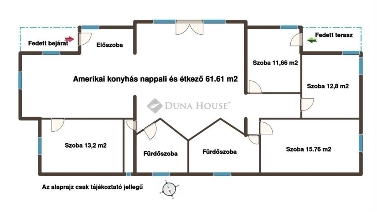 Az ingatlan 2004-ben épült, elrendezése praktikus: 4 hálószoba, 2 fürdőszoba, valamint egy tágas, amerikai konyhás nappali alkotja, amely ideális központja lehet a családi együttléteknek.