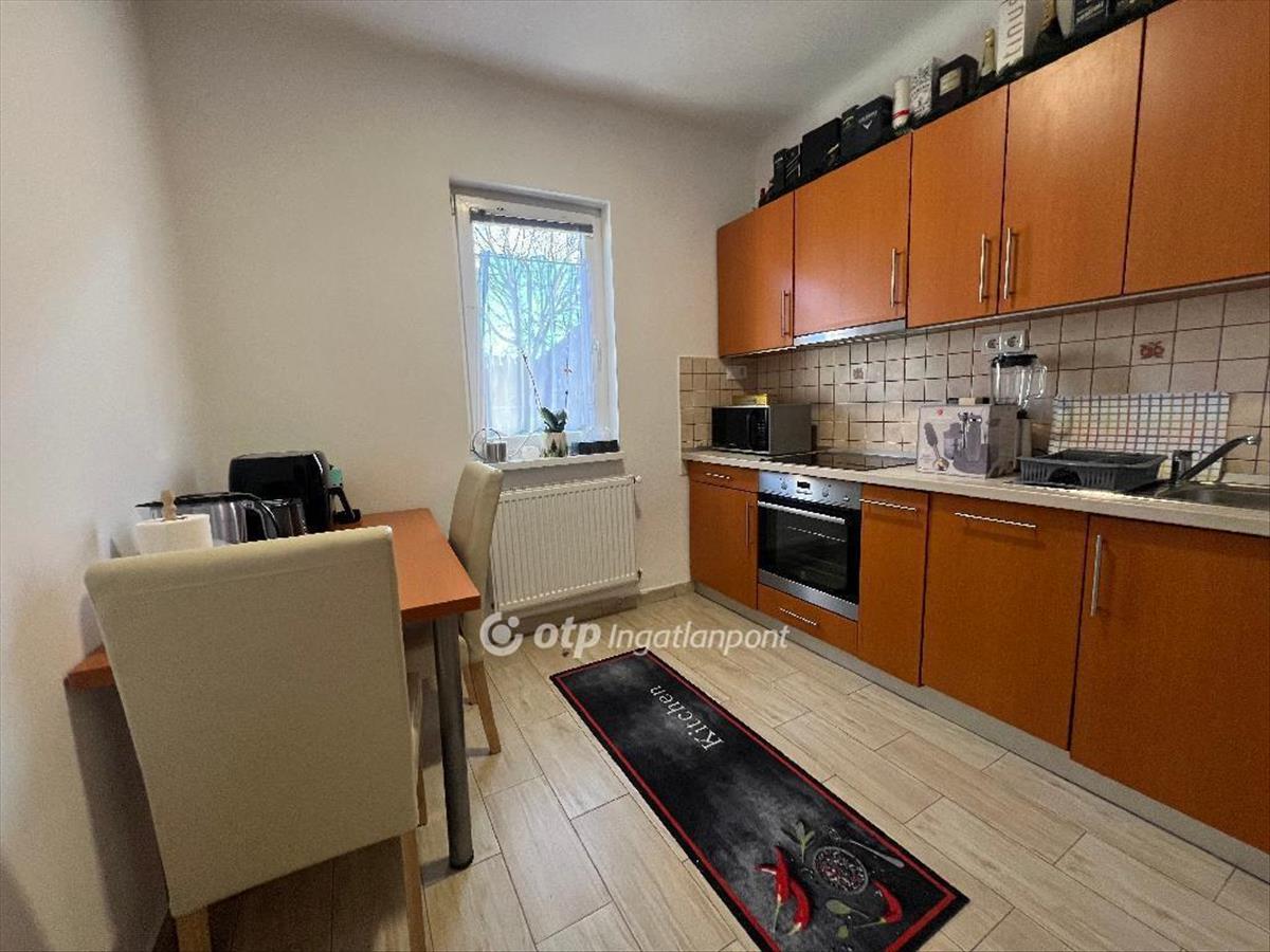 A konyhaétkező tágas, melyben a szép konyhabútor a vételár részét képezi a tűzhellyel, páraelszívóval együtt.