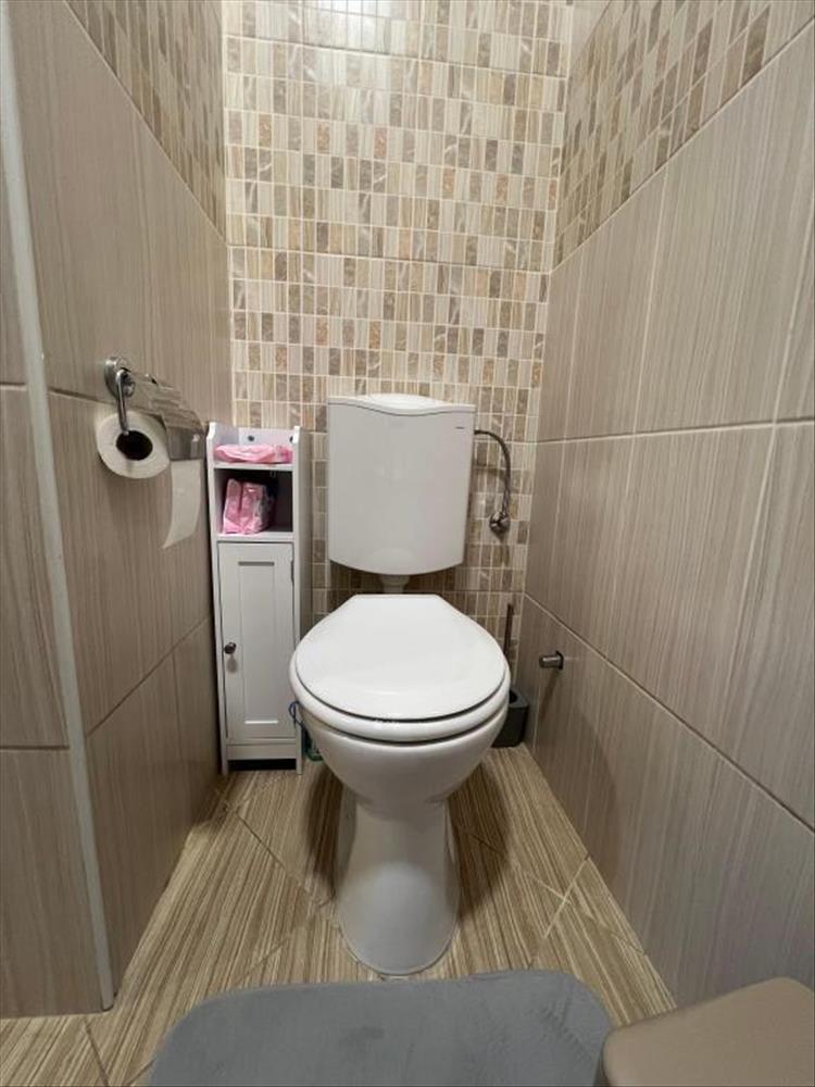 Az előtérből nyílik egy szép fürdőszoba toalettel.