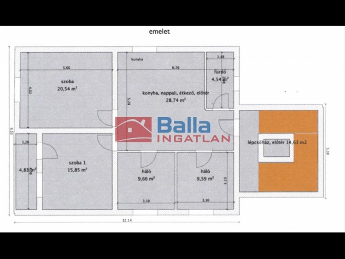Emelet: amerikai konyhás nappali, 4 hálószoba, fürdőszoba