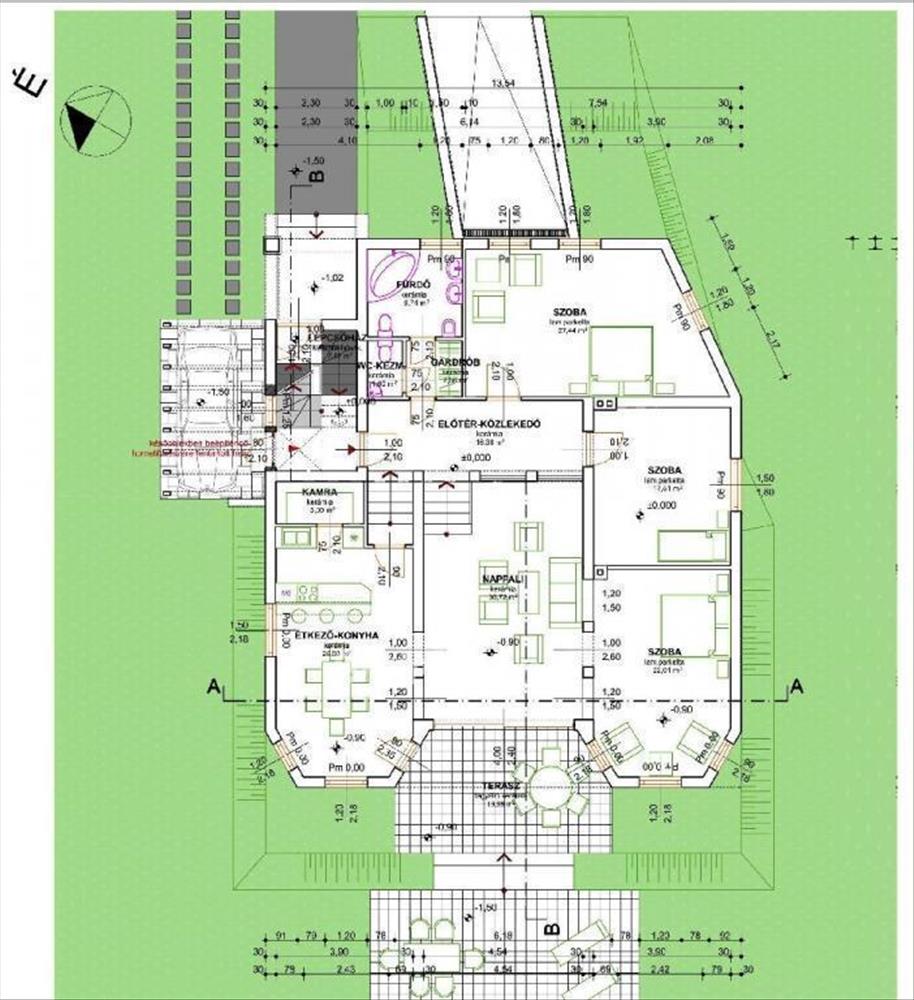 Az épület alatt komplett pinceszint található tárolókkal és garázzsal.