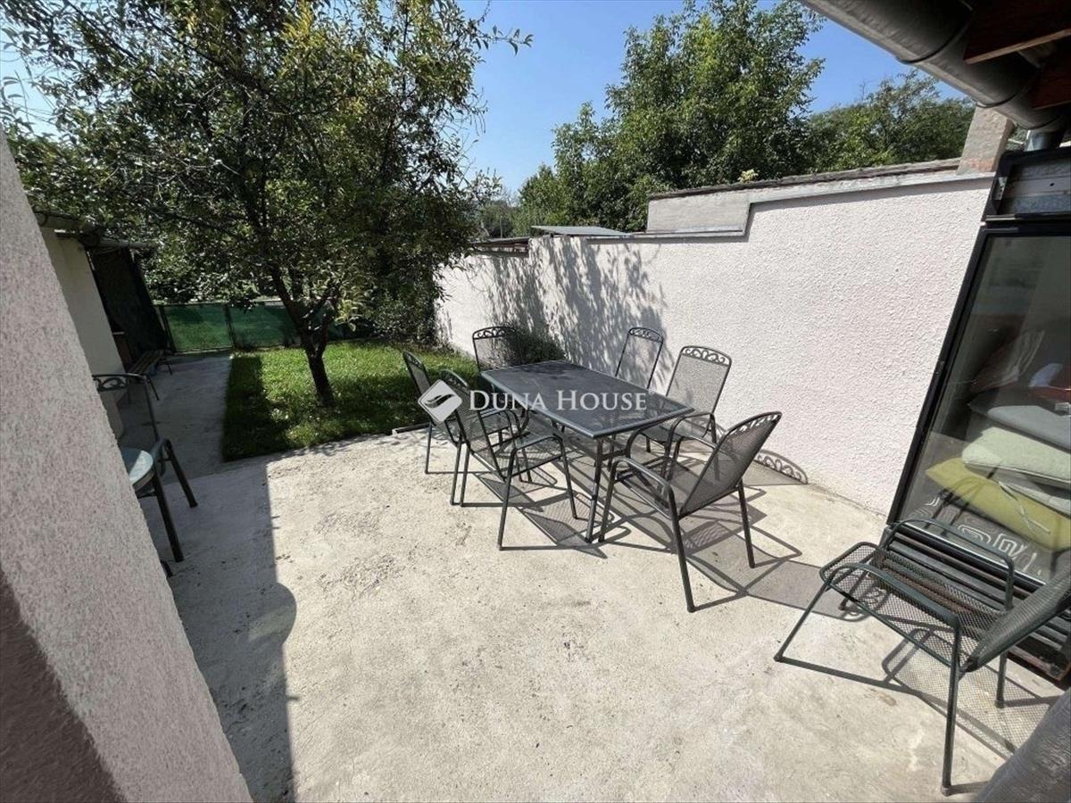 A teraszról a hátsó kertbe érkezünk, innen nyílik a zárható tároló és kinti kamra, valamint a nyitott tároló is. Saját vízóra és fúrt kút is van, ez utóbbi jelenleg szivattyúval használható, vize iható.