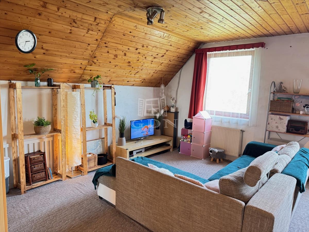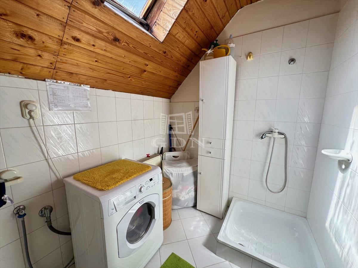 Az emelet 50m2 hasznos alapterülettel rendelkezik, benne egy tágas 25, 5 m2-es szoba, jelenleg egy második nappalinak használt helyiség, mely könnyen egy vagy két szobává alakítható, közlekedő (3, 75 m2), fürdőszoba WC-vel (4 m2), két kisebb szoba (7, 7 m2 és 7, 3 m2) melyek könnyen összenyithatók, a szobákból az utcafront felé egy 3, 75 m2-es erkély található.