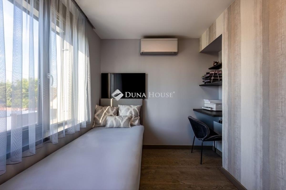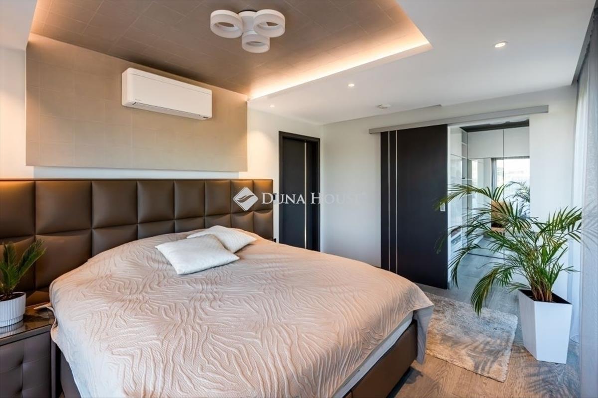 Modern luxusvilla eladó budán design, technológia, életérzés egy HELYENBudapest XXII. kerületének egyik legkedveltebb, kertvárosias részén, Budafokon, a Jogar utcában kínálunk megvételre egy minden részletében átgondolt, háromszintes, 239 m²-es prémium kategóriás luxusvillát. Ez az ingatlan nem csupán egy ház hanem egy tudatosan megtervezett, modern élettér, ahol a design, a funkcionalitás és a csúcstechnológia tökéletes harmóniában találkozik. AMI az első pillanattól megfoga saroktelken elhelyezkedő, 428 m²-es, parkosított kerttel körbevett épület teljesen körbejárható. a gondosan megtervezett kert dísznövényekkel beültetett, intimitását modern kerítés és sűrű növényzet biztosítja. a hátsó teraszon motoros árnyékolóval ellátott pavilon kapott helyet ideális nyáresti vacsorákhoz, baráti összejövetelekhez vagy egy pohár bor melletti pihenéshez. Több autó számára kényelmes beállási lehetőség biztosított. TEREK, amelyek élhetők és látványosaka nagy üvegfelületeknek köszönhetően a földszint napfényben úszik. a nappaliétkezőkonyha egy légtérben helyezkedik el, mégis harmonikusan tagolt. Látványos mennyezeti megoldások Hangulati és rejtett világítás Egyedi tervezésű, impozáns TV-fal Modern, letisztult belsőépítészeti koncepcióA prémium konyha letisztult színvilágával, modern beépített gépeivel és nagyméretű konyhaszigetével a ház központi tere. a berendezés része a cseh prémium konyhastúdió, a Sykora White Gloss kollekciója időtlen elegancia és ikonikus dizájn. Az étkezőben helyet kapott a joop! Német minőségű, bőr étkezőgarnitúra, amely modern megjelenésével tökéletesen illeszkedik az enteriőrhöz. a konyhaszigetet Panama bőr bárszékek egészítik ki acél vázzal és állítható magassággal. EMELETI privát ÉLETTÉRAz emeleten található: 3 hálószoba Fürdőszoba + külön wc Szülői háló saját gardróbszobával Tágas erkélyA hálószobában a Yataş boxspring ágy gondoskodik a szállodai szintű kényelemről. a gyerekszobában a Casa Bonita perui kézműves gyermekágy kapott helyet, amely különleges, természetes hangulatot teremt. a fürdőszobában a Ravak Rosa II aszimmetrikus akrilkád biztosít prémium fürdőélményt modern formavilággal. ALSÓ szint wellness és VENDÉGTÉRAz alsó szinten wellness- és vendégtér került kialakításra: Szauna Fitnesz rész Mosókonyha Tárolók Gépészet külön mellékhelyiséggelIdeális akár vendégszobának, akár privát pihenőtérnek vagy exkluzív hobby-részlegnek. CSÚCSTECHNOLÓGIA és ENERGIATUDATOSSÁGAz ingatlanban működő Loxone okosotthon rendszer egyetlen alkalmazásból vezérelhetővé teszi: Világítást Padlófűtést Árnyékolást Klímát Biztonsági rendszertA rendszer intelligensen alkalmazkodik a lakók napi szokásaihoz: érzékeli a jelenlétet, optimalizálja az energiafelhasználást, valamint előre beállított hangulat- és időzített programokkal még kényelmesebbé és gazdaságosabbá teszi a mindennapokat. a ház napelemes rendszerrel, saját akkumulátorokkal és elektromosautó-töltési lehetőséggel felszerelt modern, fenntartható megoldás a jövőre tervezve. Padlófűtés és klímarendszer biztosítja az egész éves komfortot. a vételár tartalmazza a berendezésta vételár a minőségi, luxus kategóriájú bútorokat tartalmazza, így az ingatlan kulcsrakész állapotban, azonnali költözéssel birtokba vehető. LOKÁCIÓA villa Budafok csendes, kertvárosias részén, a 6-os és 7-es főút között található, kiváló infrastruktúrával. a közelben: Iskolák, óvodák Bevásárlási lehetőségek Orvosi rendelő, gyógyszertár Posta és szolgáltatásokPár perc alatt elérhető a Savoya Park és a Campona bevásárlóközpont. FŐBB jellemzők Modern, letisztult luxusvilla 3 hálószoba + wellness / vendégtér 3 szint, átgondolt elrendezés Prémium burkolatok és egyedi belsőépítészeti megoldások Luxus konyha, látványos nappali Szauna, fitnesz Okosotthon rendszer Napelem, akkumulátor, elektromos autó töltés Parkosított kert, terasz, motoros pavilon Több autó számára beállóEz az ingatlan ideális választás azoknak, akik kompromisszummentes minőséget, modern technológiát és exkluzív otthont keresnek Buda egyik legjobb presztízsű részén. Ha egy kész, prémium minőségű luxusotthonba szeretne azonnal beköltözni ezt látnia kell. Hívjon most, és szeressen bele személyesen is. Hitel.hu - Hasonlítsa össze a bankok lakáshitel ajánlatait