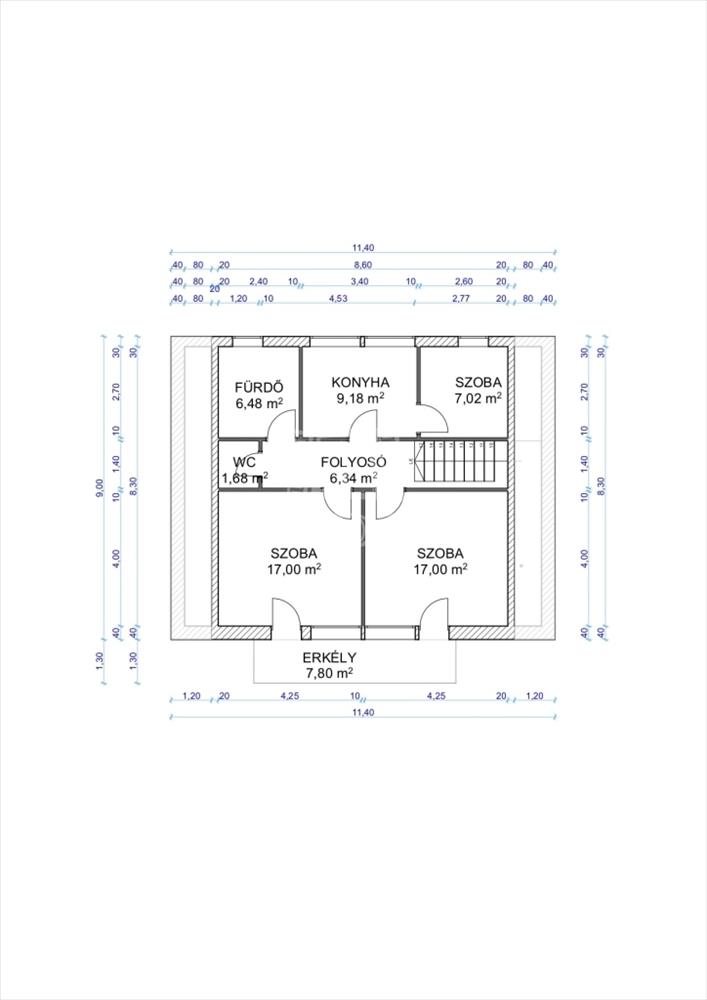 -közlekedő(6, 34m2), 3 szoba(17m2, 17m2, 7, 02m2), konyha-étkező(9, 18m2), fürdőszoba(6, 48m2), WC(1, 68m2), erkély(7, 8m2)
