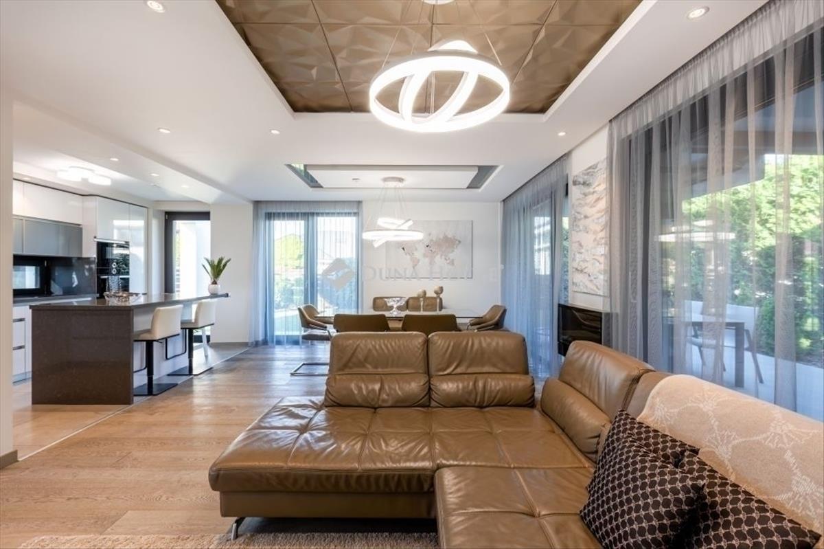 Modern luxusvilla eladó budán design, technológia, életérzés egy HELYENBudapest XXII. kerületének egyik legkedveltebb, kertvárosias részén, Budafokon, a Jogar utcában kínálunk megvételre egy minden részletében átgondolt, háromszintes, 239 m²-es prémium kategóriás luxusvillát. Ez az ingatlan nem csupán egy ház hanem egy tudatosan megtervezett, modern élettér, ahol a design, a funkcionalitás és a csúcstechnológia tökéletes harmóniában találkozik. AMI az első pillanattól megfoga saroktelken elhelyezkedő, 428 m²-es, parkosított kerttel körbevett épület teljesen körbejárható. a gondosan megtervezett kert dísznövényekkel beültetett, intimitását modern kerítés és sűrű növényzet biztosítja. a hátsó teraszon motoros árnyékolóval ellátott pavilon kapott helyet ideális nyáresti vacsorákhoz, baráti összejövetelekhez vagy egy pohár bor melletti pihenéshez. Több autó számára kényelmes beállási lehetőség biztosított. TEREK, amelyek élhetők és látványosaka nagy üvegfelületeknek köszönhetően a földszint napfényben úszik. a nappaliétkezőkonyha egy légtérben helyezkedik el, mégis harmonikusan tagolt. Látványos mennyezeti megoldások Hangulati és rejtett világítás Egyedi tervezésű, impozáns TV-fal Modern, letisztult belsőépítészeti koncepcióA prémium konyha letisztult színvilágával, modern beépített gépeivel és nagyméretű konyhaszigetével a ház központi tere. a berendezés része a cseh prémium konyhastúdió, a Sykora White Gloss kollekciója időtlen elegancia és ikonikus dizájn. Az étkezőben helyet kapott a joop! Német minőségű, bőr étkezőgarnitúra, amely modern megjelenésével tökéletesen illeszkedik az enteriőrhöz. a konyhaszigetet Panama bőr bárszékek egészítik ki acél vázzal és állítható magassággal. EMELETI privát ÉLETTÉRAz emeleten található: 3 hálószoba Fürdőszoba + külön wc Szülői háló saját gardróbszobával Tágas erkélyA hálószobában a Yataş boxspring ágy gondoskodik a szállodai szintű kényelemről. a gyerekszobában a Casa Bonita perui kézműves gyermekágy kapott helyet, amely különleges, természetes hangulatot teremt. a fürdőszobában a Ravak Rosa II aszimmetrikus akrilkád biztosít prémium fürdőélményt modern formavilággal. ALSÓ szint wellness és VENDÉGTÉRAz alsó szinten wellness- és vendégtér került kialakításra: Szauna Fitnesz rész Mosókonyha Tárolók Gépészet külön mellékhelyiséggelIdeális akár vendégszobának, akár privát pihenőtérnek vagy exkluzív hobby-részlegnek. CSÚCSTECHNOLÓGIA és ENERGIATUDATOSSÁGAz ingatlanban működő Loxone okosotthon rendszer egyetlen alkalmazásból vezérelhetővé teszi: Világítást Padlófűtést Árnyékolást Klímát Biztonsági rendszertA rendszer intelligensen alkalmazkodik a lakók napi szokásaihoz: érzékeli a jelenlétet, optimalizálja az energiafelhasználást, valamint előre beállított hangulat- és időzített programokkal még kényelmesebbé és gazdaságosabbá teszi a mindennapokat. a ház napelemes rendszerrel, saját akkumulátorokkal és elektromosautó-töltési lehetőséggel felszerelt modern, fenntartható megoldás a jövőre tervezve. Padlófűtés és klímarendszer biztosítja az egész éves komfortot. a vételár tartalmazza a berendezésta vételár a minőségi, luxus kategóriájú bútorokat tartalmazza, így az ingatlan kulcsrakész állapotban, azonnali költözéssel birtokba vehető. LOKÁCIÓA villa Budafok csendes, kertvárosias részén, a 6-os és 7-es főút között található, kiváló infrastruktúrával. a közelben: Iskolák, óvodák Bevásárlási lehetőségek Orvosi rendelő, gyógyszertár Posta és szolgáltatásokPár perc alatt elérhető a Savoya Park és a Campona bevásárlóközpont. FŐBB jellemzők Modern, letisztult luxusvilla 3 hálószoba + wellness / vendégtér 3 szint, átgondolt elrendezés Prémium burkolatok és egyedi belsőépítészeti megoldások Luxus konyha, látványos nappali Szauna, fitnesz Okosotthon rendszer Napelem, akkumulátor, elektromos autó töltés Parkosított kert, terasz, motoros pavilon Több autó számára beállóEz az ingatlan ideális választás azoknak, akik kompromisszummentes minőséget, modern technológiát és exkluzív otthont keresnek Buda egyik legjobb presztízsű részén. Ha egy kész, prémium minőségű luxusotthonba szeretne azonnal beköltözni ezt látnia kell. Hívjon most, és szeressen bele személyesen is. Hitel.hu - Hasonlítsa össze a bankok lakáshitel ajánlatait